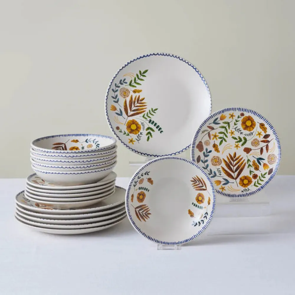 Karaca Gardenya 18-Piece Stoneware Dinner Set for 6 People, Multi