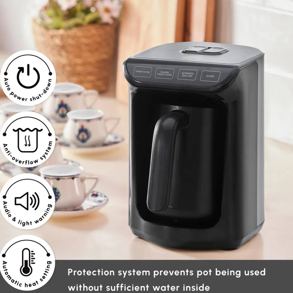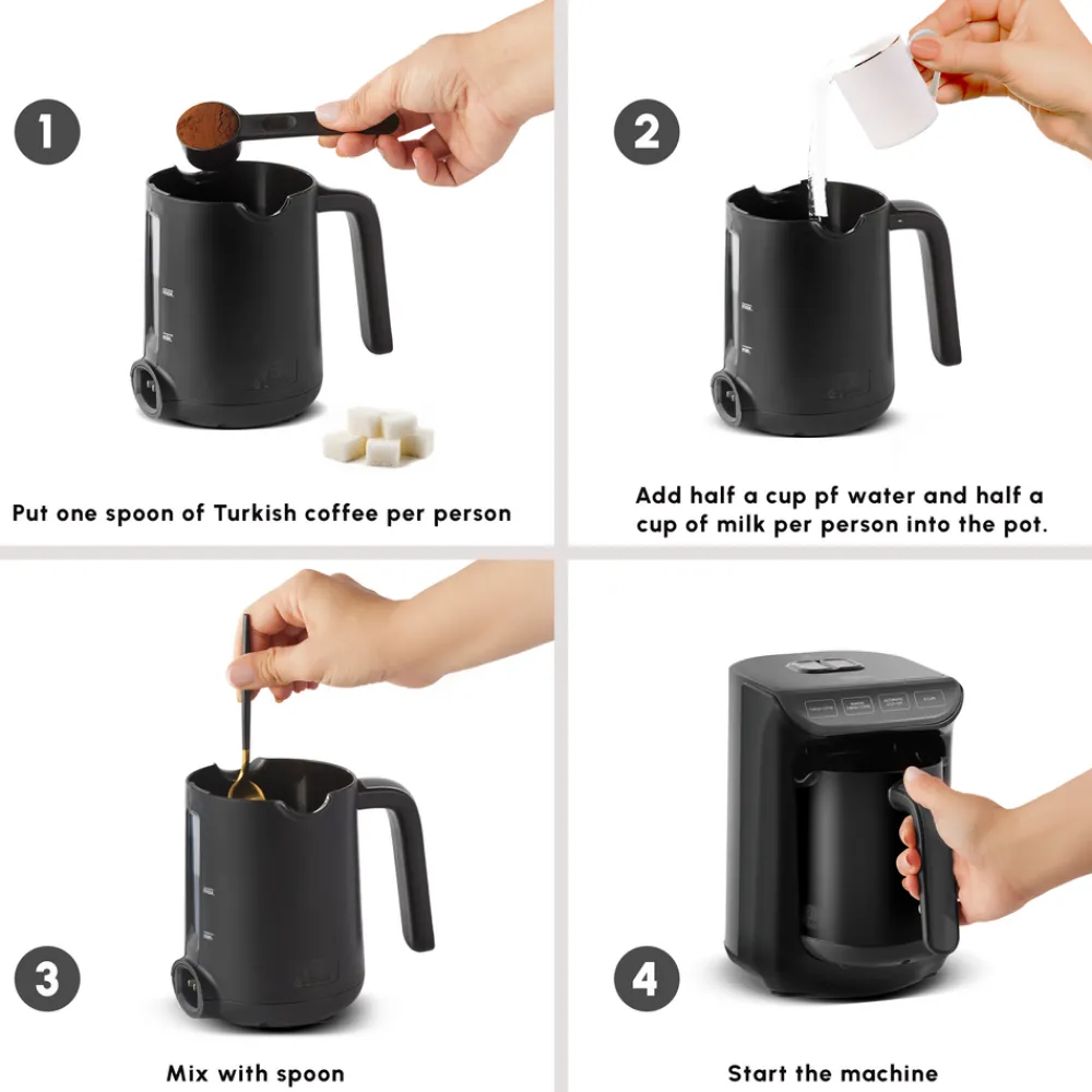Expertly brews milky Turkish coffee, hot chocolate, and instant coffee to the ideal consistency.