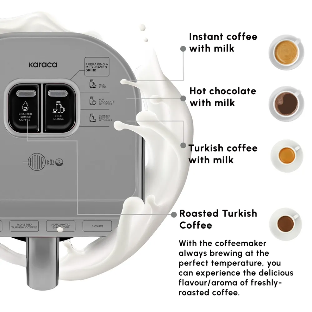 Hatır Köz prepares up to 5 cups of Turkish coffee in one go. With automatic temperature control, it ensures perfect brewing at the optimal heat and timing.