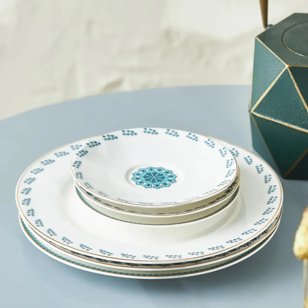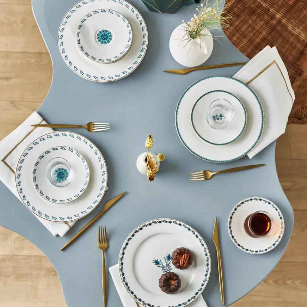 Karaca iznik 18 Piece Porcelain Serveware Set for 6 People, 19cm, White Multi