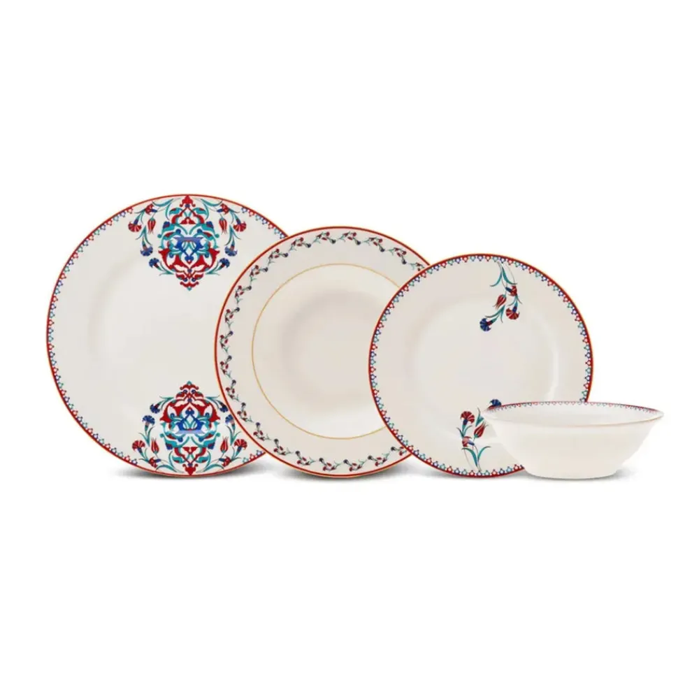Karaca Nakkaş 24-Piece Bone China Dinner Set for 6 People, White Multi