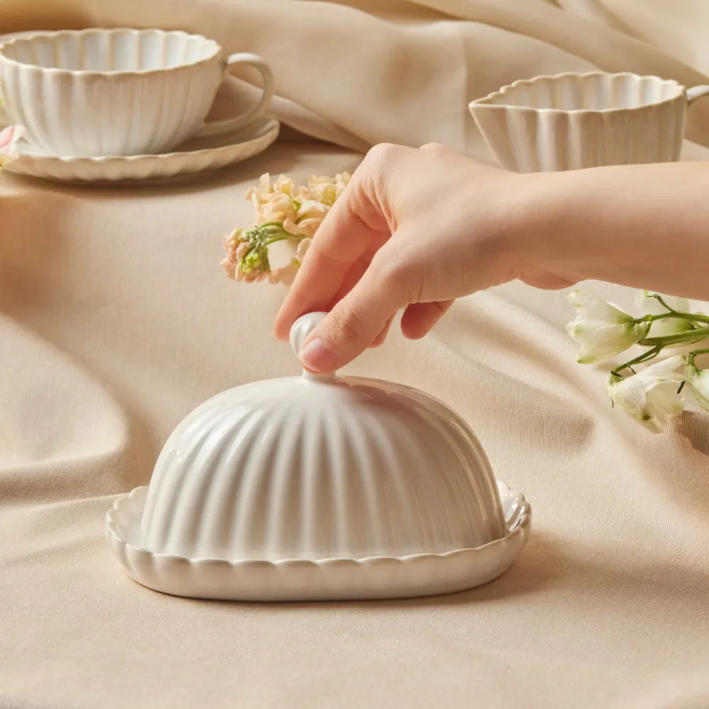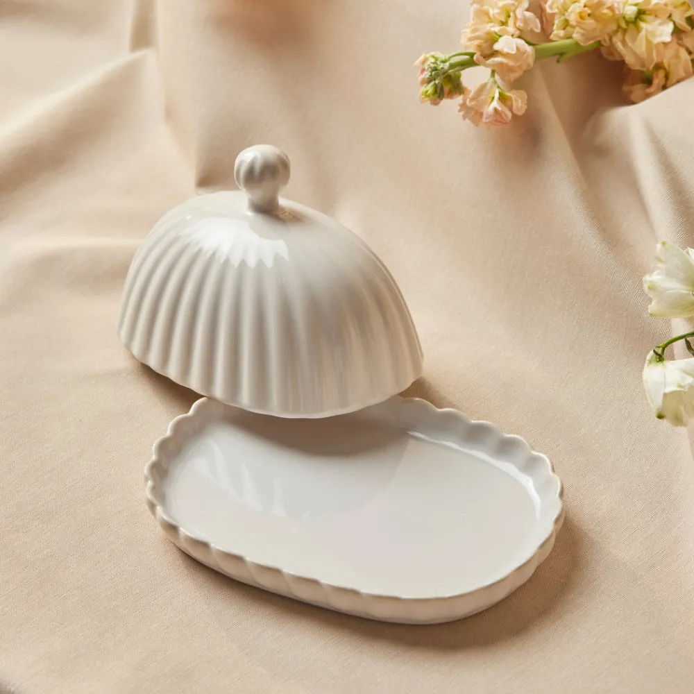 - Karaca New Daisy Stoneware Butter Dish, 18,5cm, White