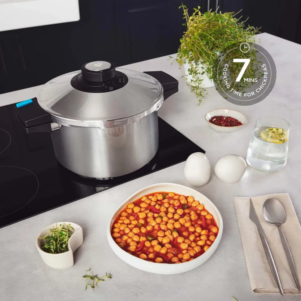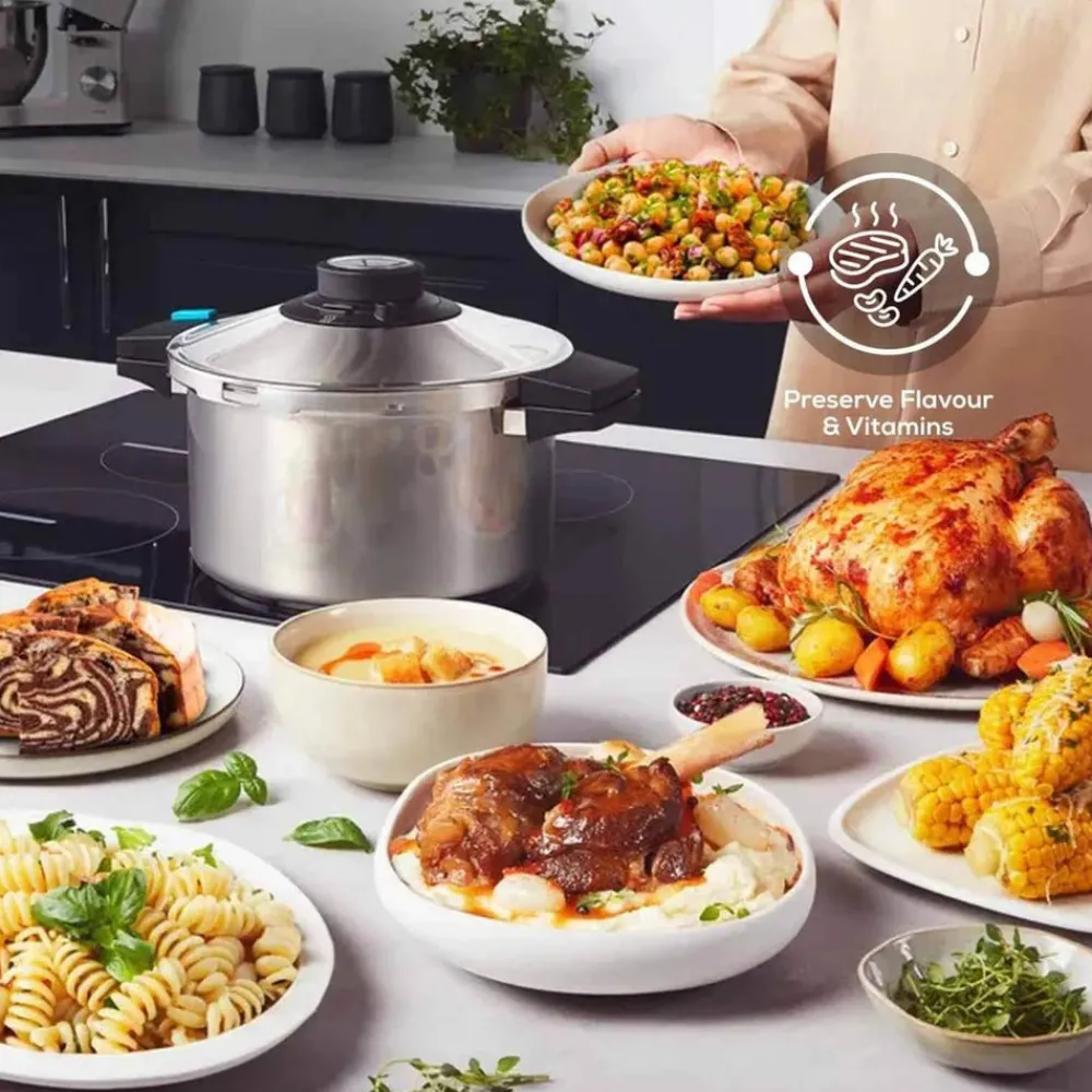 The safety system ensures safe and easy use. It saves time and energy. Thanks to the cooking program, it regulates the cooking temperatures while cooking vegetables, meat, fish and legumes, thus preserving the vitamins and flavors of the foods. Different and ergonomic opening and closing system is easy, fast and safe. Thanks to its improved base system, it provides equal heat distribution and is suitable for use on all stoves, including induction. It is suitable for use in induction cookers. It can be washed in the dishwasher.