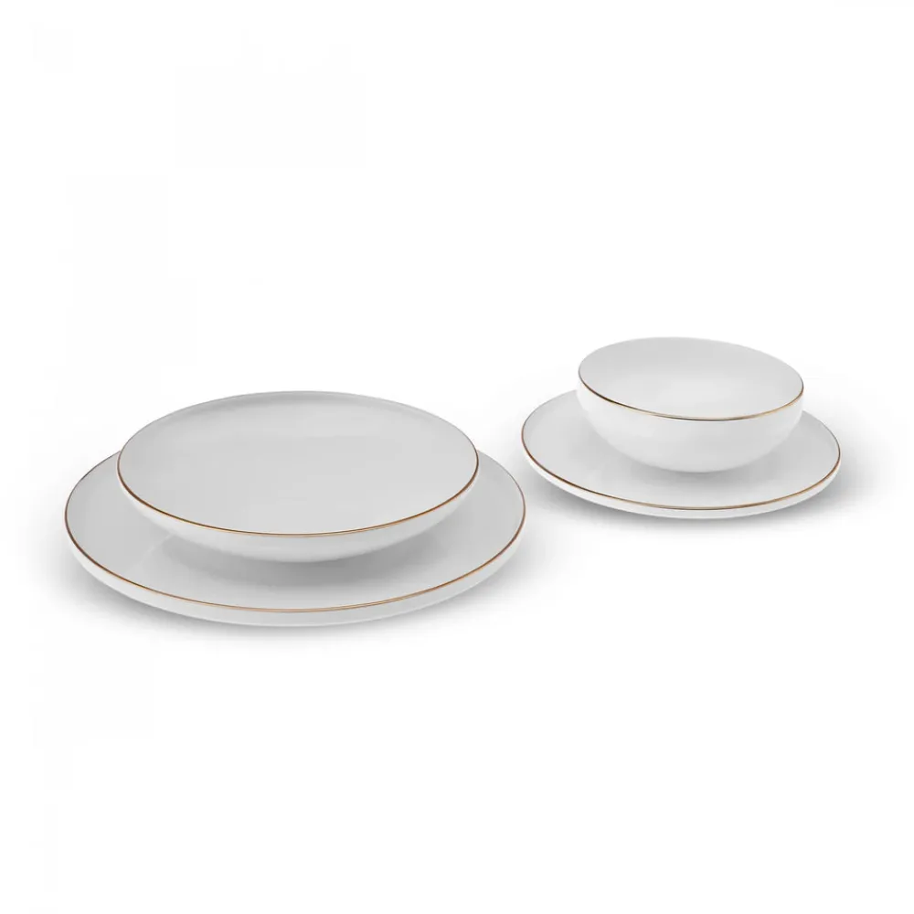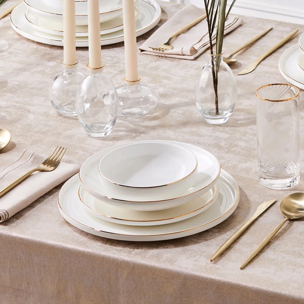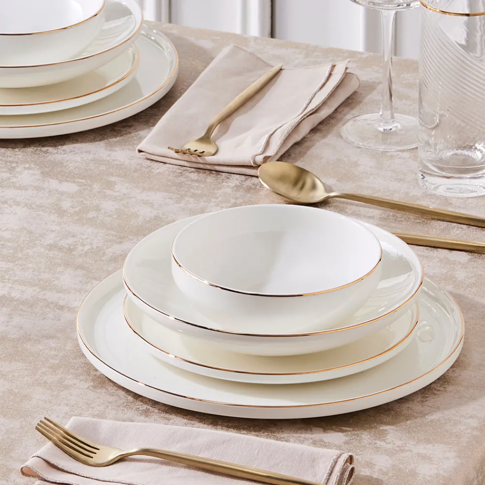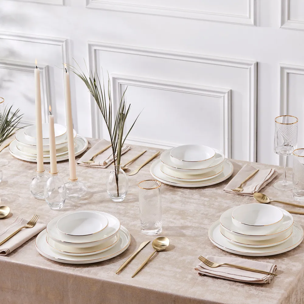 Featuring a delicate gold rim detail, the Karaca Belinda Dinner Set brings timeless elegance to any table setting. Its soft ivory base and minimalist accents evoke a sense of understated luxury, making it ideal for both contemporary and classic dining spaces. The design effortlessly elevates everyday meals while remaining versatile enough for special occasions.