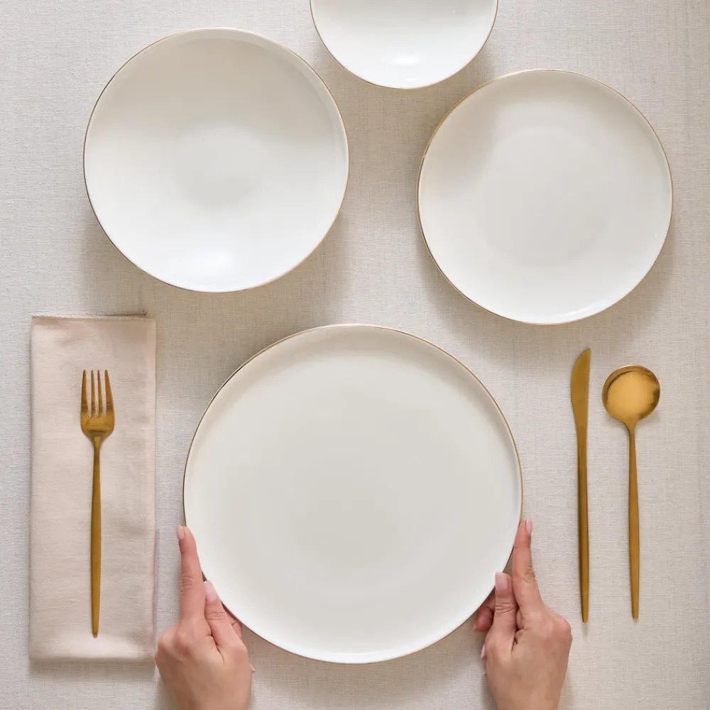 Karaca Stream Bone China Belinda 24-Piece Dinner Set for 6 People, Gold