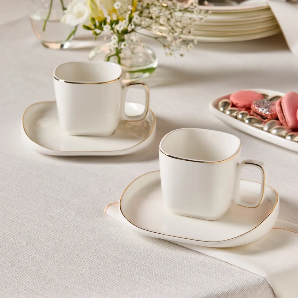 Karaca Streamline Plato 4-Piece Tea Cup and Saucer Set for 2 People, 220ml, White