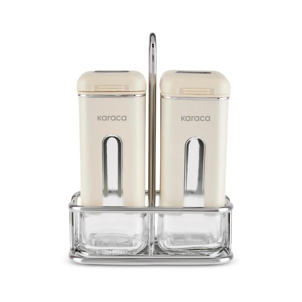 Karaca Luminous 3-Piece Glass Salt and Pepper Shaker, Cream
