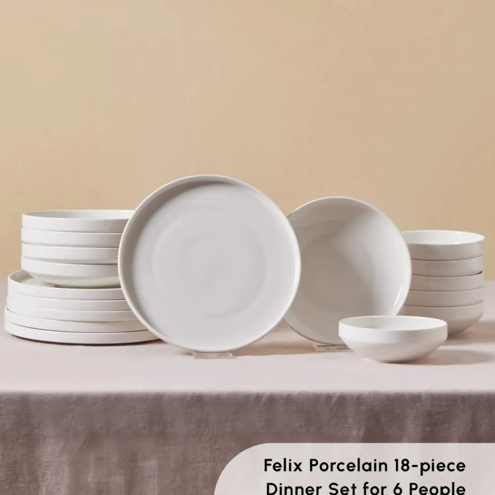 Elevate your dining moments with the Felix 18-Piece Porcelain Dinner Set, meticulously designed for a touch of sophistication.