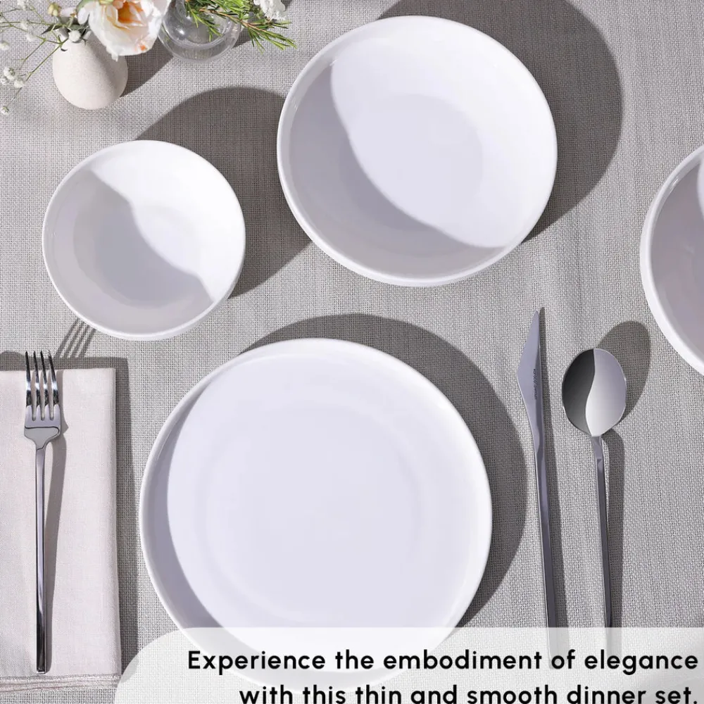 Crafted from high-quality porcelain, each piece showcases an elegant design, adding a touch of refinement to your table. The scratch and crack-resistant construction ensures that this dinner set remains intact, even with frequent use, making it a durable type of china crafted from high-quality porcelain.