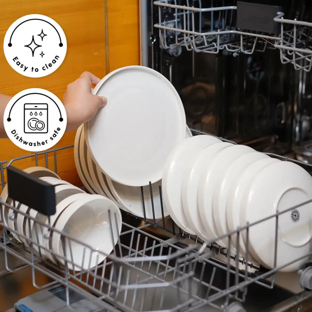 Crafted with durability in mind, this dinner set is both resilient and dishwasher-safe, ensuring easy maintenance for everyday use
