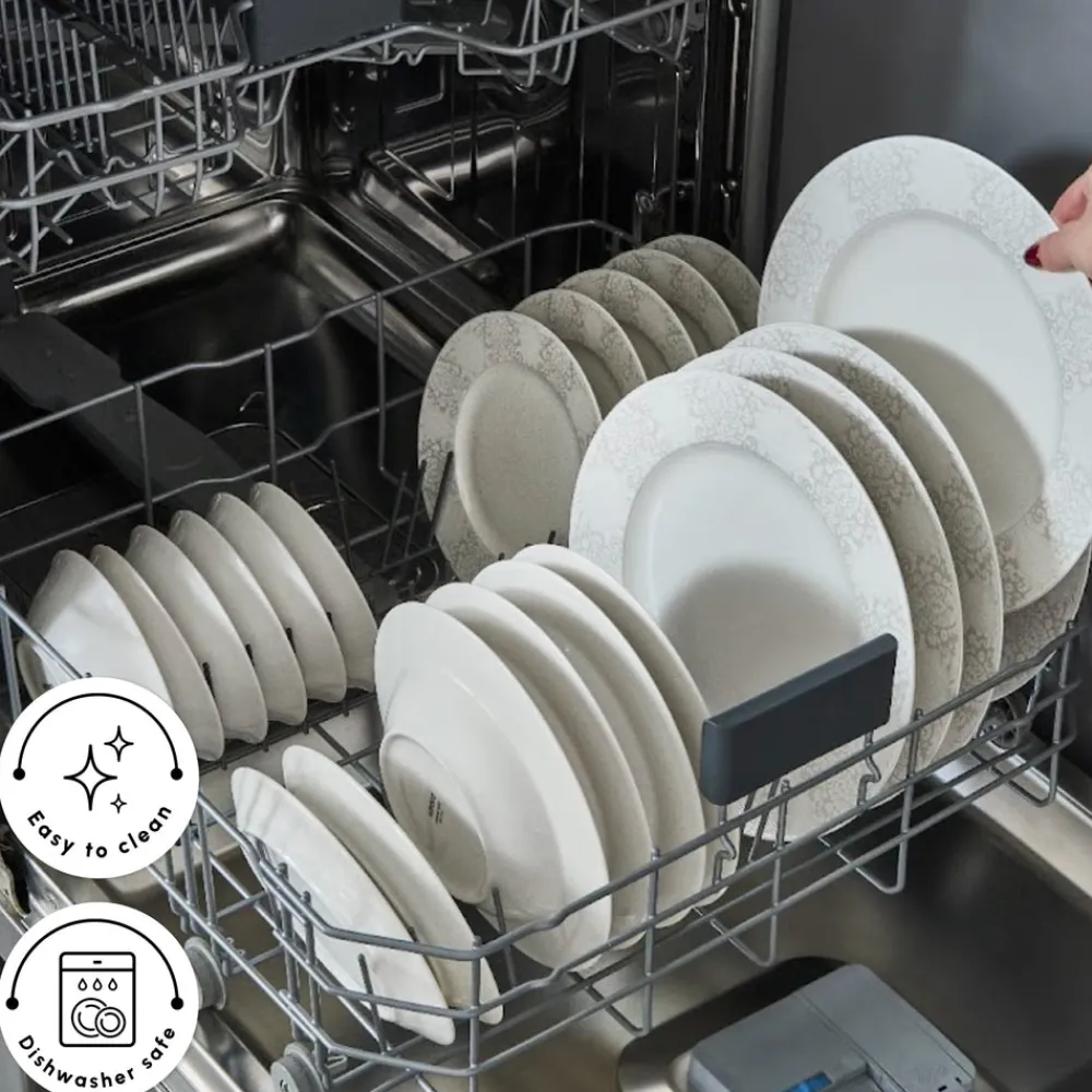 Produced using high-grade, non-porous Bone China, this set offers exceptional resistance to wear while remaining noticeably light in the hand. Its smooth, glass-like surface resists moisture and odour, helping your dinnerware look and feel fresh with every use.
