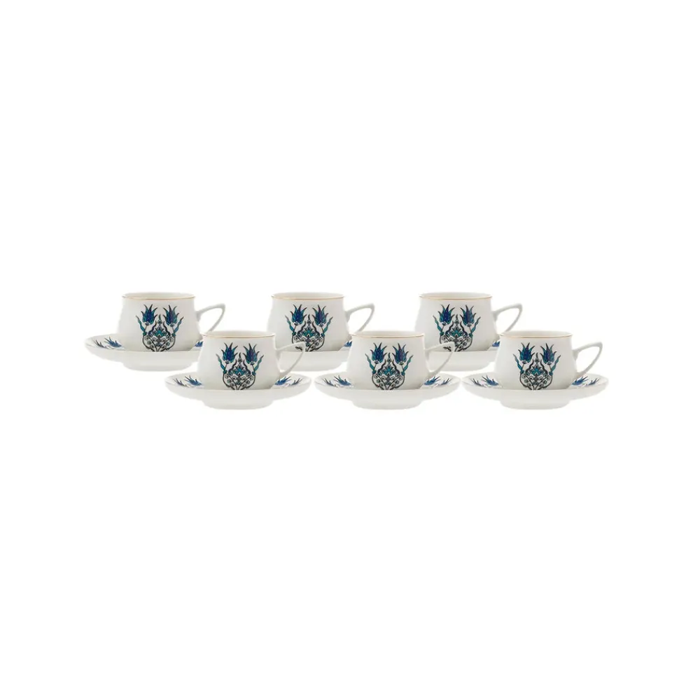 Karaca İznik 12 Piece Porcelain Espresso Turkish Coffee Cup Set of 6, 100ml, Multi