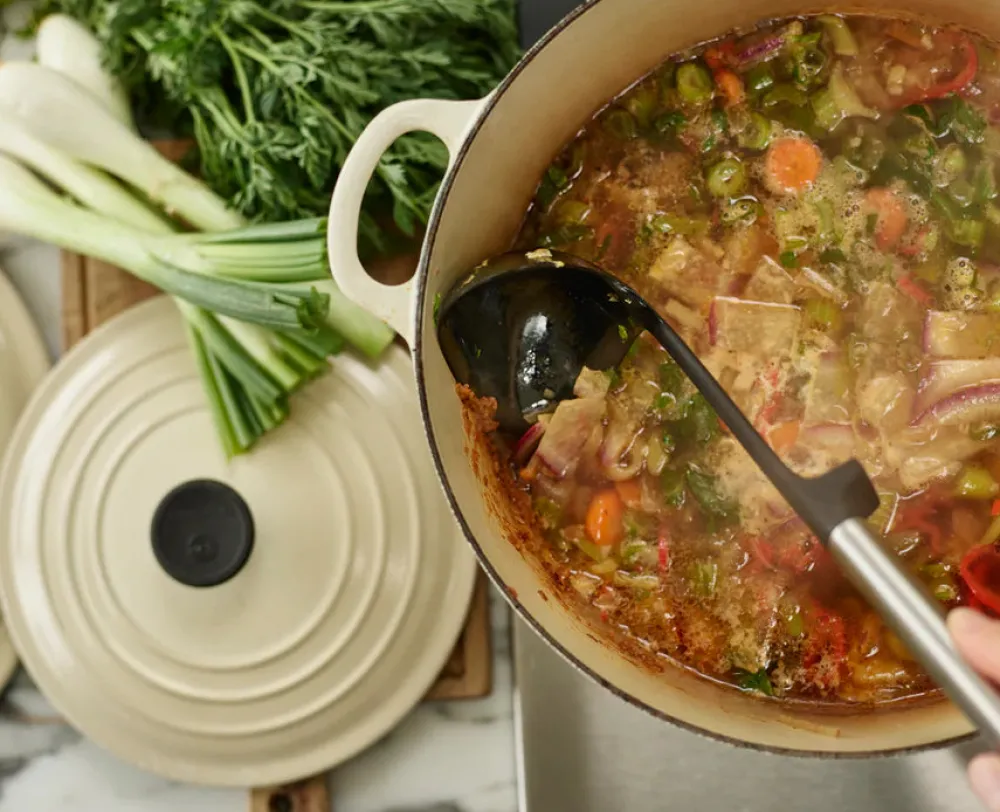 Elevate technology designed to improve hygiene and reduce mess. Weighted handle and integrated tool rest prevents the tool head from touching the work surface when placed down. Deep tool head with a flat front edge ideal for scooping from pots and pans. Silicone heat-resistant up to 210˚C/410˚F. Suitable for use with non-stick cookware. Dishwasher safe.