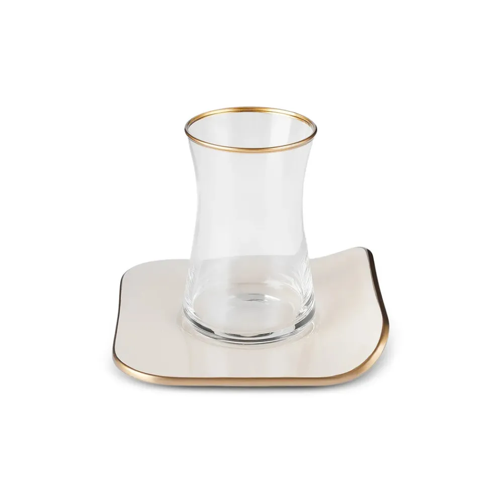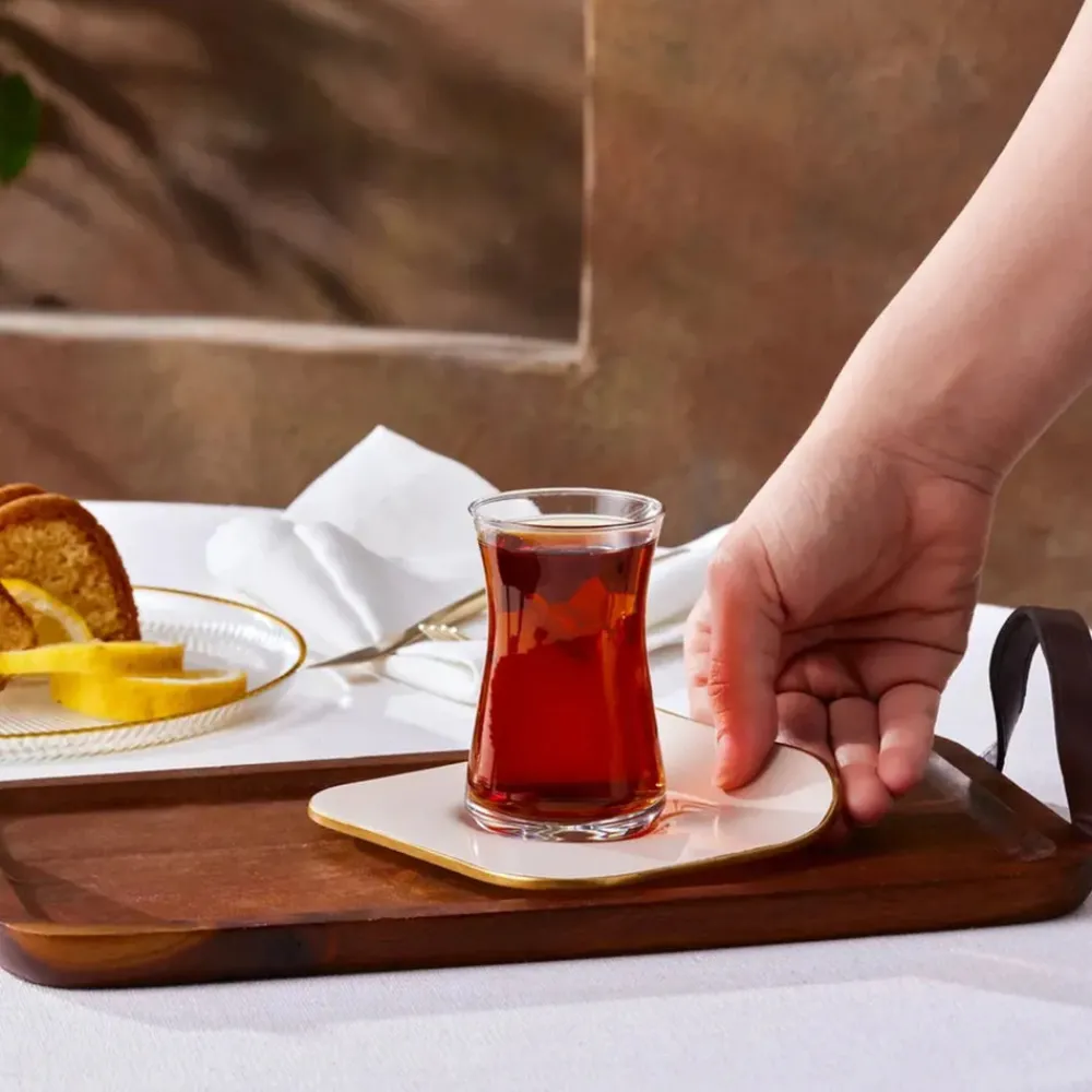 Karaca Retro 12-Piece Turkish Tea Set for 6 People, 165ml, Cream