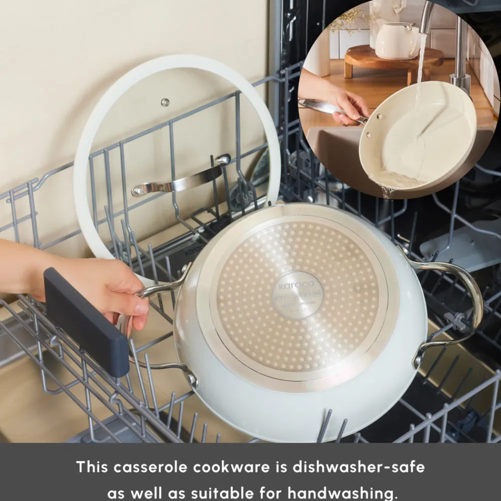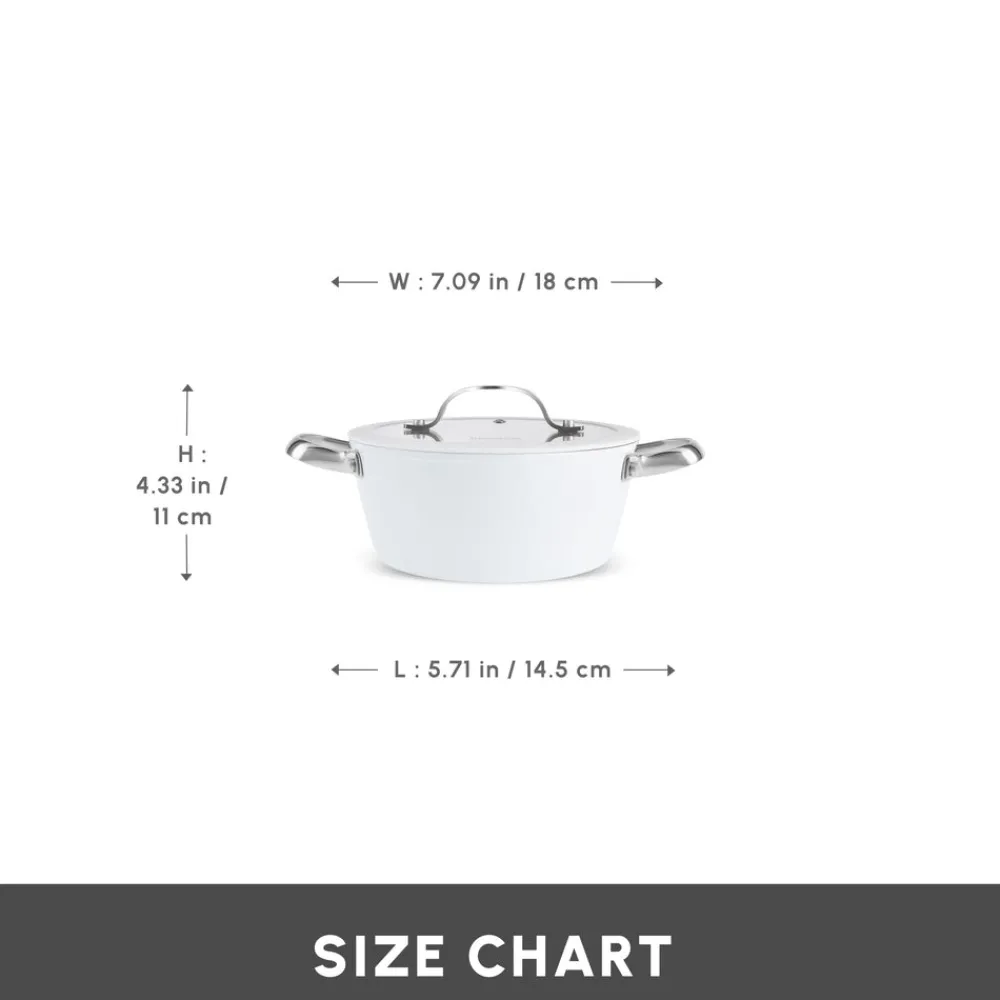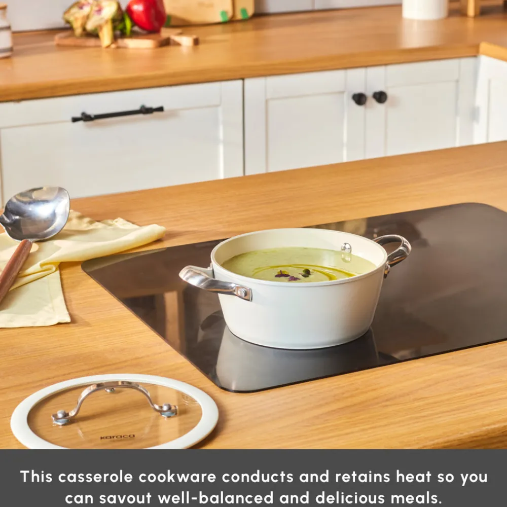 New Swiss Crystal Almond Cream Non-Stick Induction Stainless Steel Handle Casserole & Lid, 18cm, Cream Pots|Ceramic Cookware