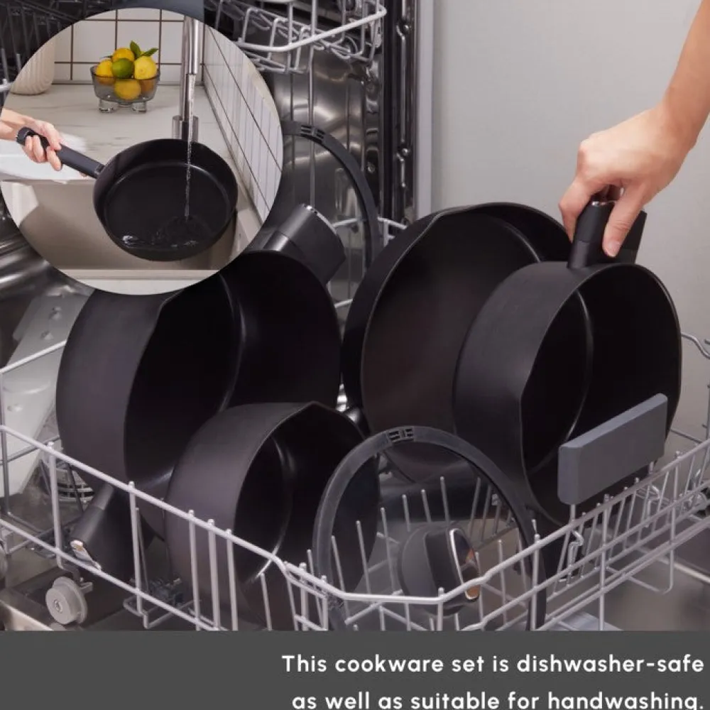 Karaca Swiss Crystal Midnight 6-Piece Ceramic Non-Stick Induction Cookware Set, Black
