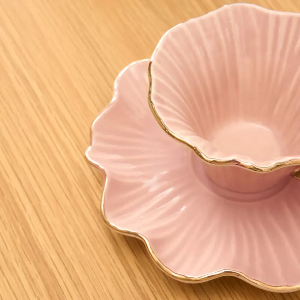Karaca Bliss 12-Piece Porcelain Turkish Coffee Cup Set for 6 People, 90ml, Pink
