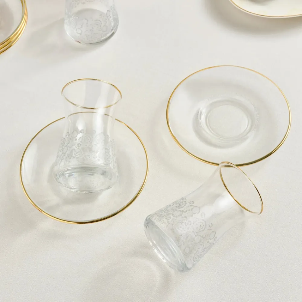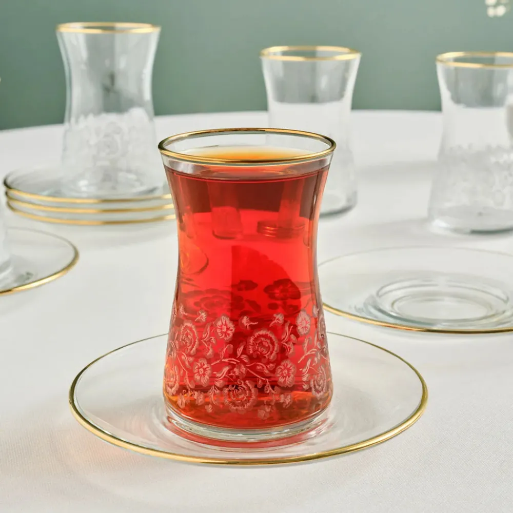 Karaca Brugge 12-Piece Glass Turkish Tea Set for 6 People, Gold