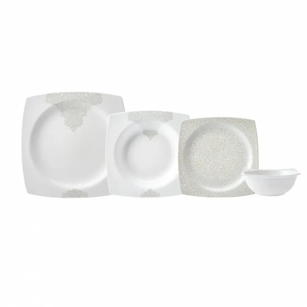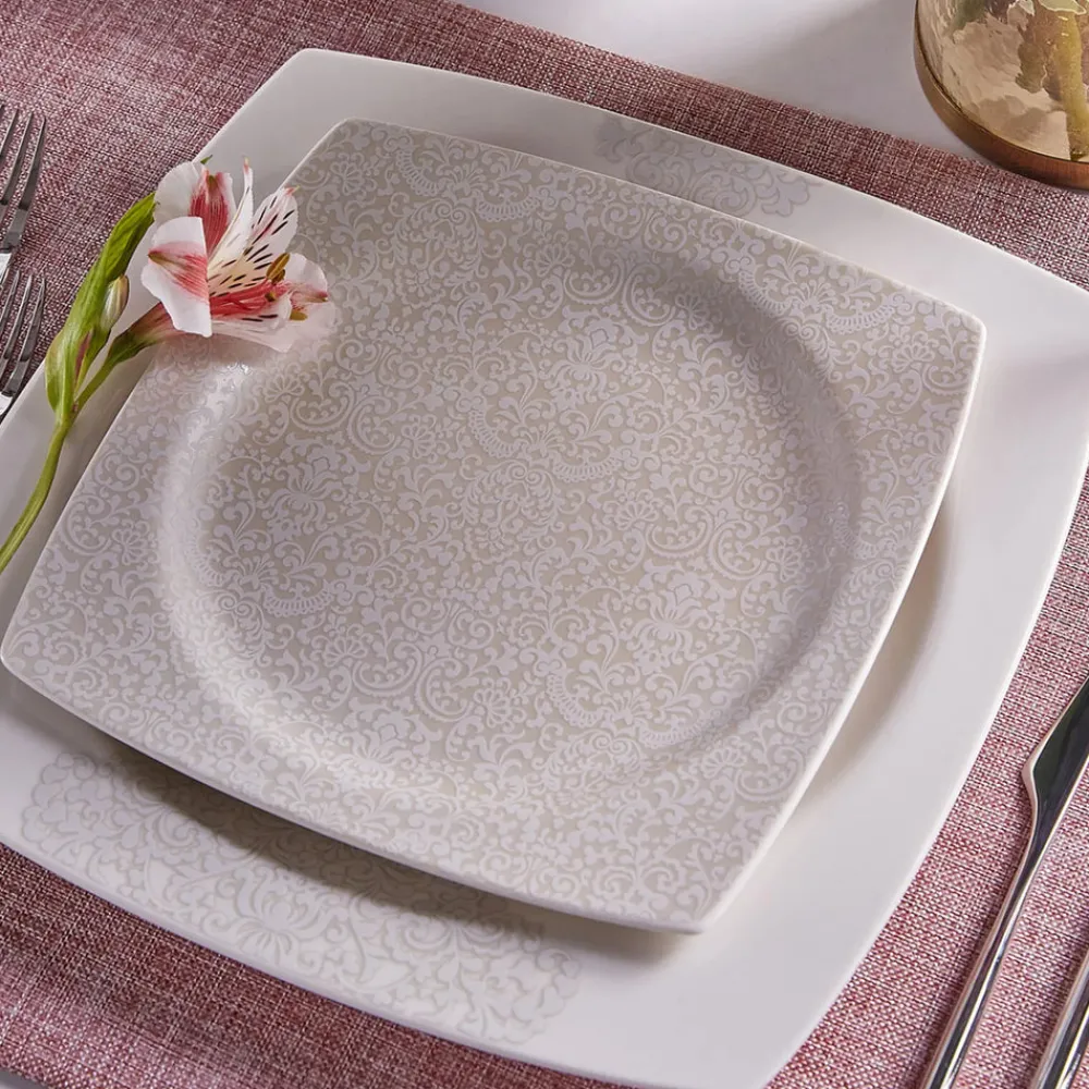 Crafted from high-quality porcelain, each piece showcases an elegant design, adding a touch of refinement to your table. The scratch and crack-resistant construction ensures that this dinner set remains intact, even with frequent use, making it a durable type of china crafted from high-quality porcelain.