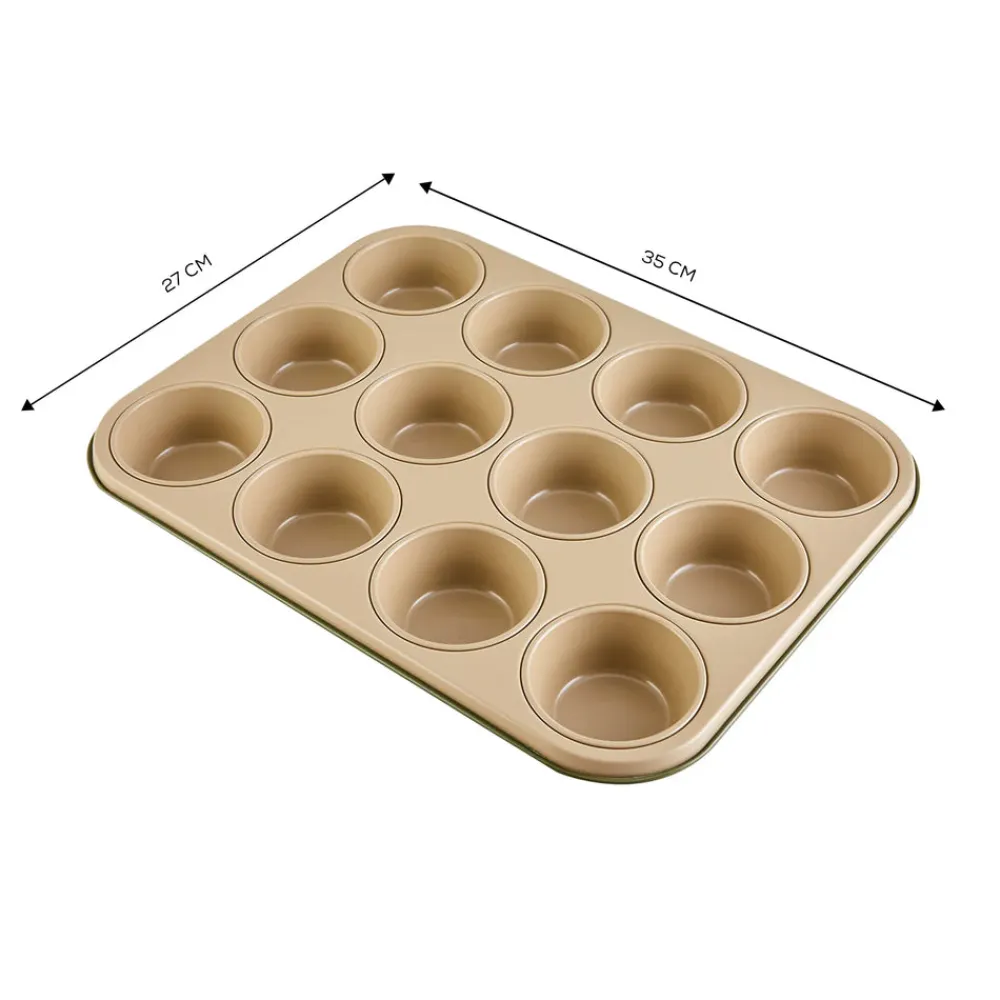 Karaca Jennese Non-Stick Metal Muffin Sheet, 35cmx27cm, Green