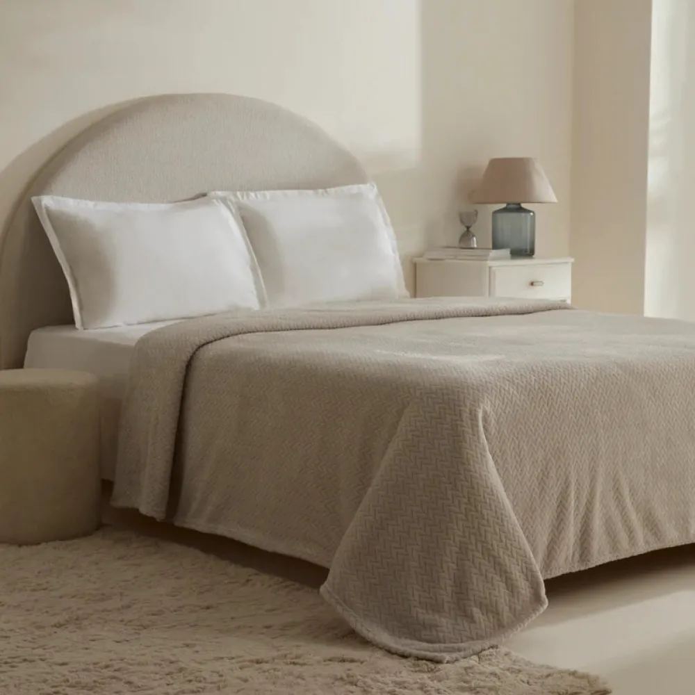 Karaca Leaves Wellsoft Blanket, Double, 200×220cm, Light Grey