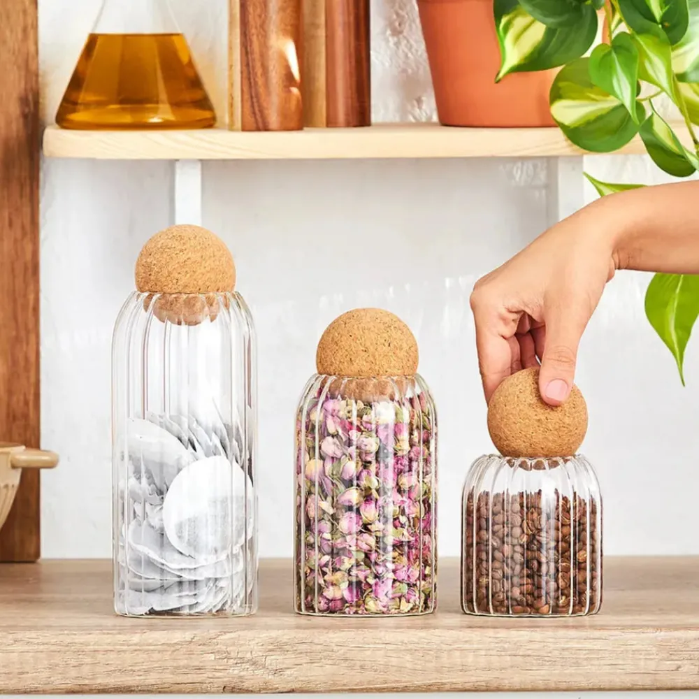 Made from high-quality glass, these containers offer durability and transparency, allowing you to easily identify the contents inside without opening them.