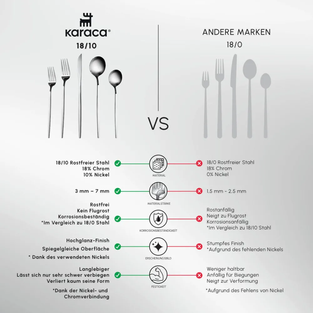 While handwashing is recommended to preserve the finish, the Karaca Orion Silver cutlery set is designed to maintain its sleek look, even with regular use, making it a practical and stylish addition to your dining collection.