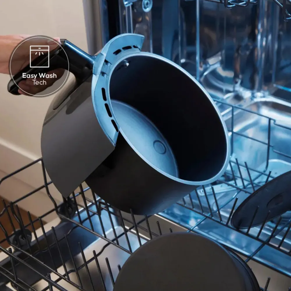 Karaca air fryer technology makes cooking easy. It is also very easy to clean Karaca Air Cook! With Easy Wash Tech, which allows it to be washed in the dishwasher, you can devote your energy not to cleaning, but to discovering brand new recipes. You can easily wash both your removable chamber and the cooking grate, which allows easy cleaning of the oils accumulated in the chamber, in the dishwasher.