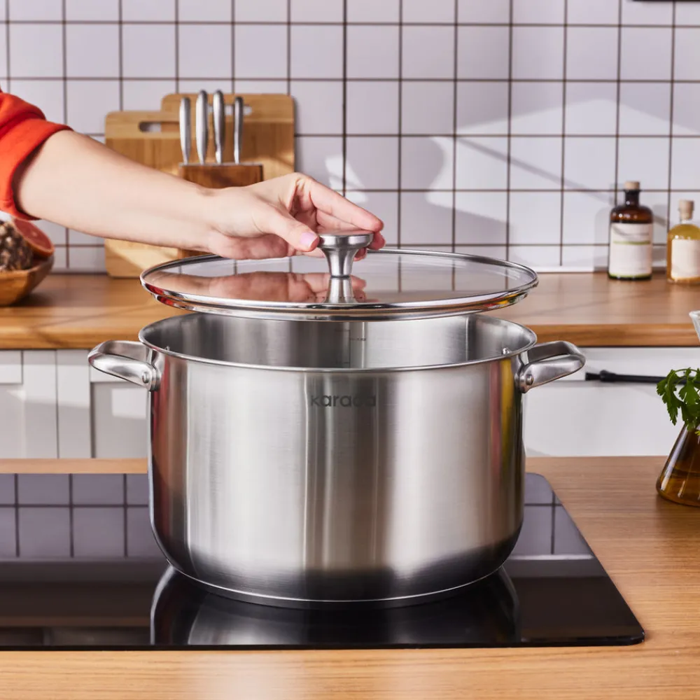 Karaca Elite Stainless Steel Induction Stock Pot & Lid, 30cm, Silver