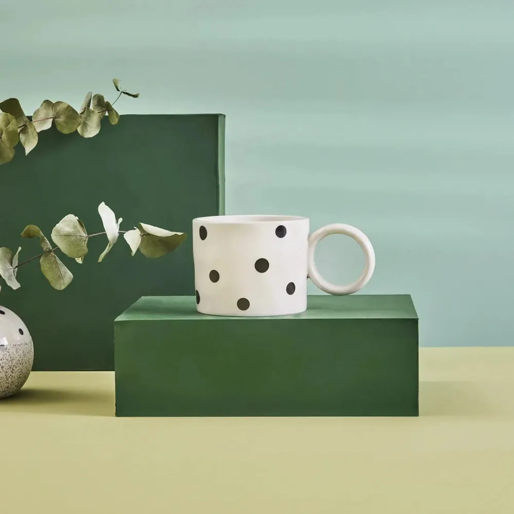 Karaca Erica Dot Porcelain Mug, 370ml, Black