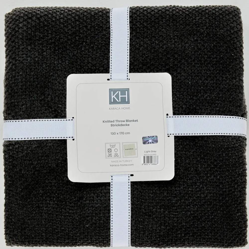 Karaca Home Double Seed Stitch Throw, 130cmx170cm, Dark Grey