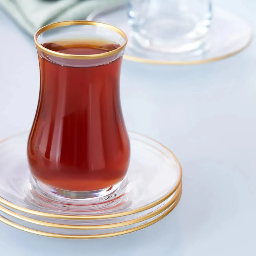 Karaca Kirke 12 Piece Glass Turkish Tea Set for 6 People, 110ml, Gold Transparent