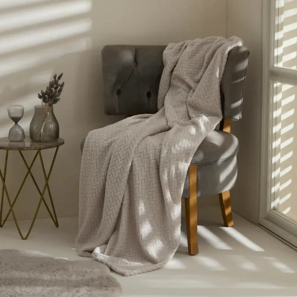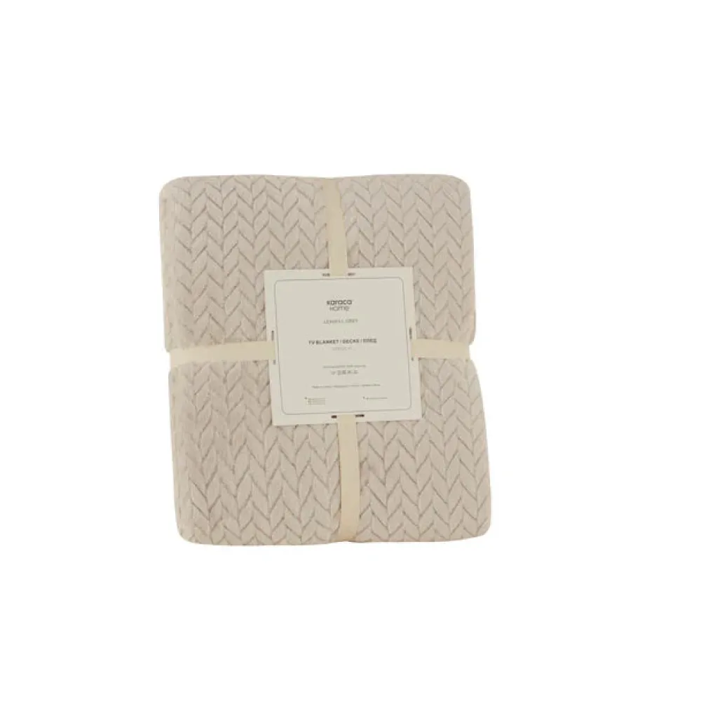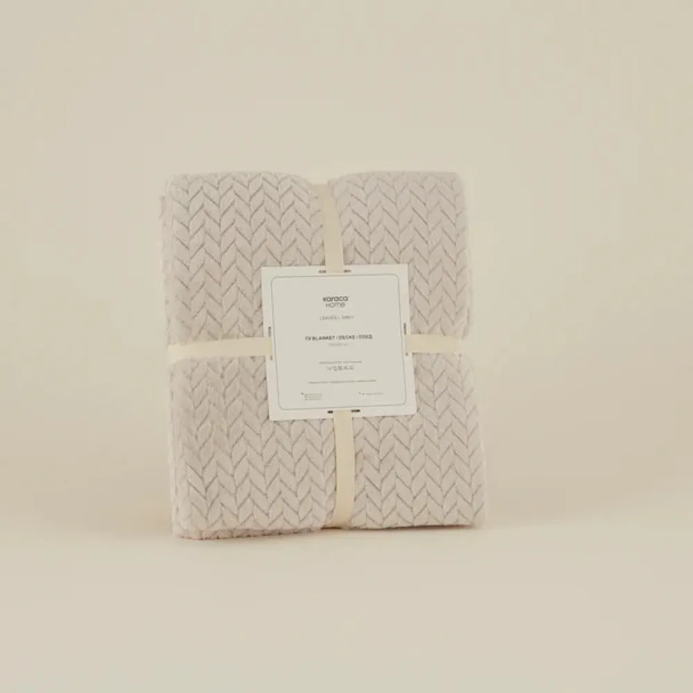 Karaca Leaves Wellsoft Blanket, 130x150cm, Light Grey