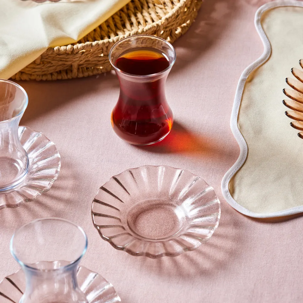 The set features six beautifully designed tea glasses (130ml) and six matching saucers, offering a sophisticated way to serve and enjoy your favourite tea, whether for daily use or special occasions.