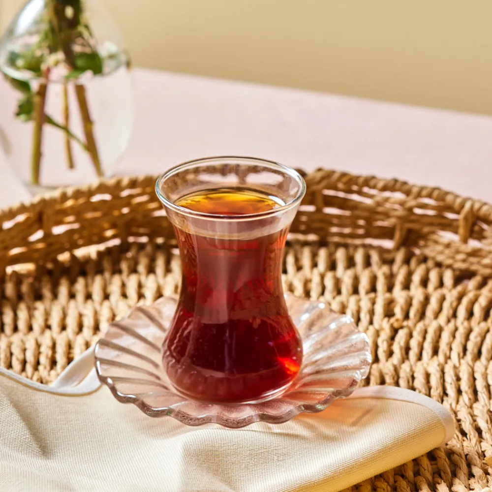 Each tea glass is designed for a comfortable grip, ensuring an enjoyable drinking experience. The perfectly sized saucers add stability and ease of use, making every serving effortless.