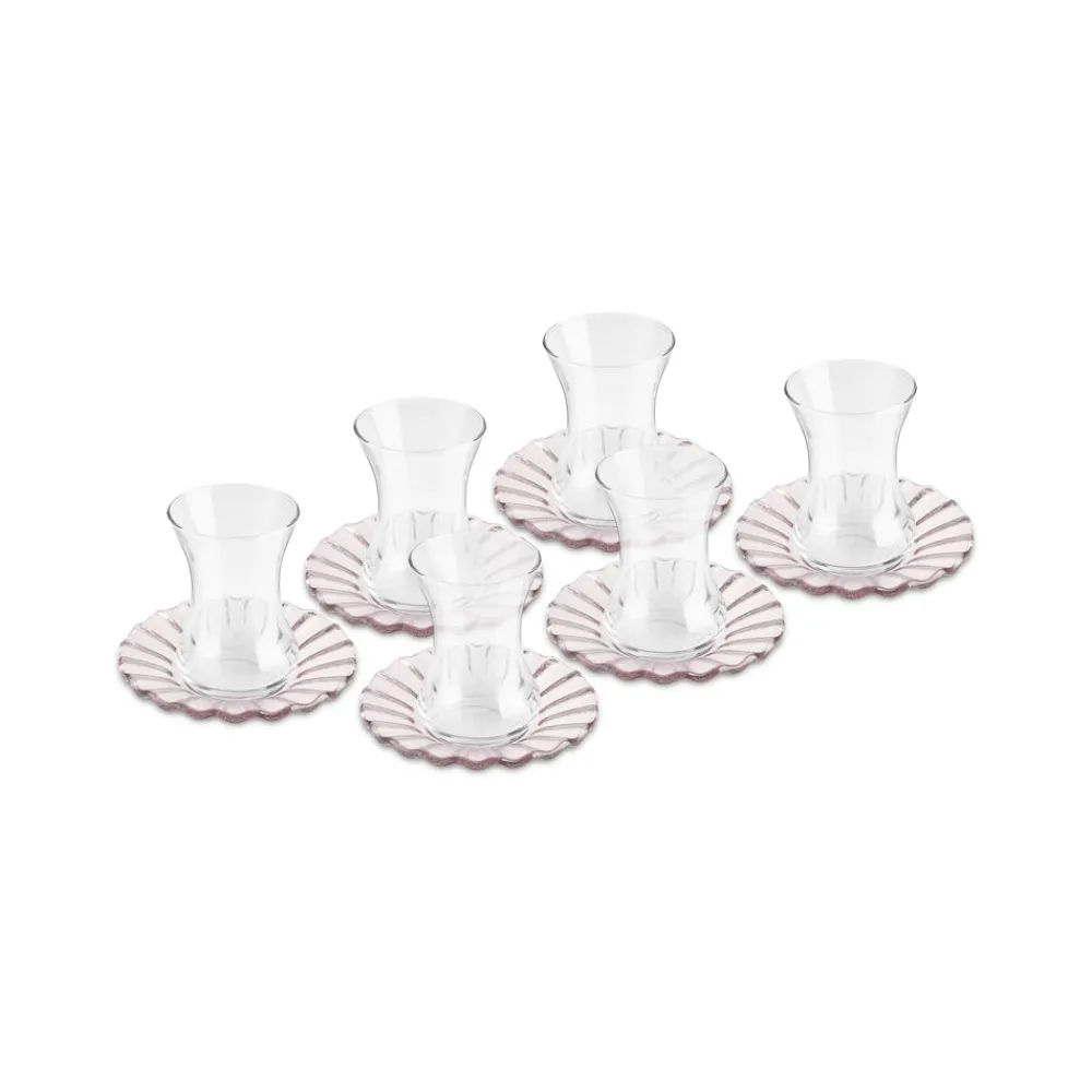 Karaca Luna 12-Piece Turkish Tea Set for 6 People, 130ml, Light Brown