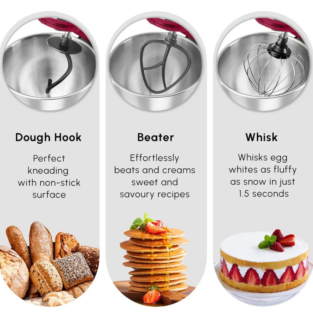 With the renewed Karaca Mastermaid Chef Pro Stand Mixer’s 1500W high motor power and improved ergonomic handle that provides easy grip, it is now very easy to catch flavour and creativity in the kitchen.