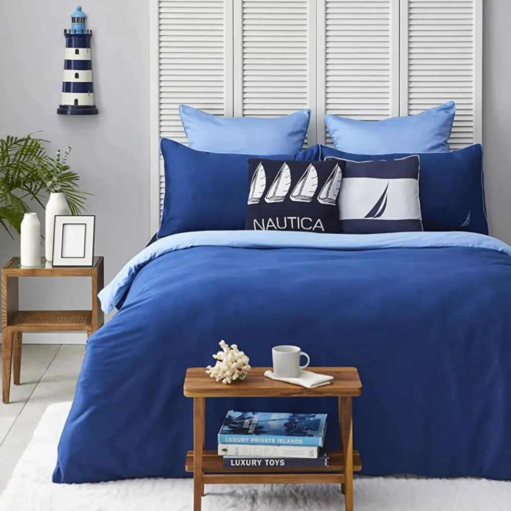 Nautica Home Creek 100% Cotton Duvet Cover Set, King, 230cmx220cm, Blue Navy Blue