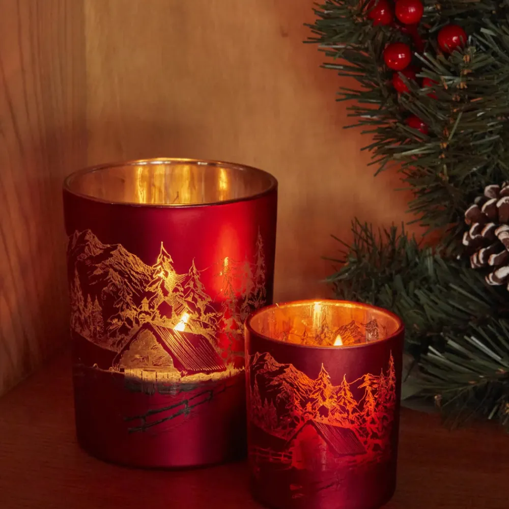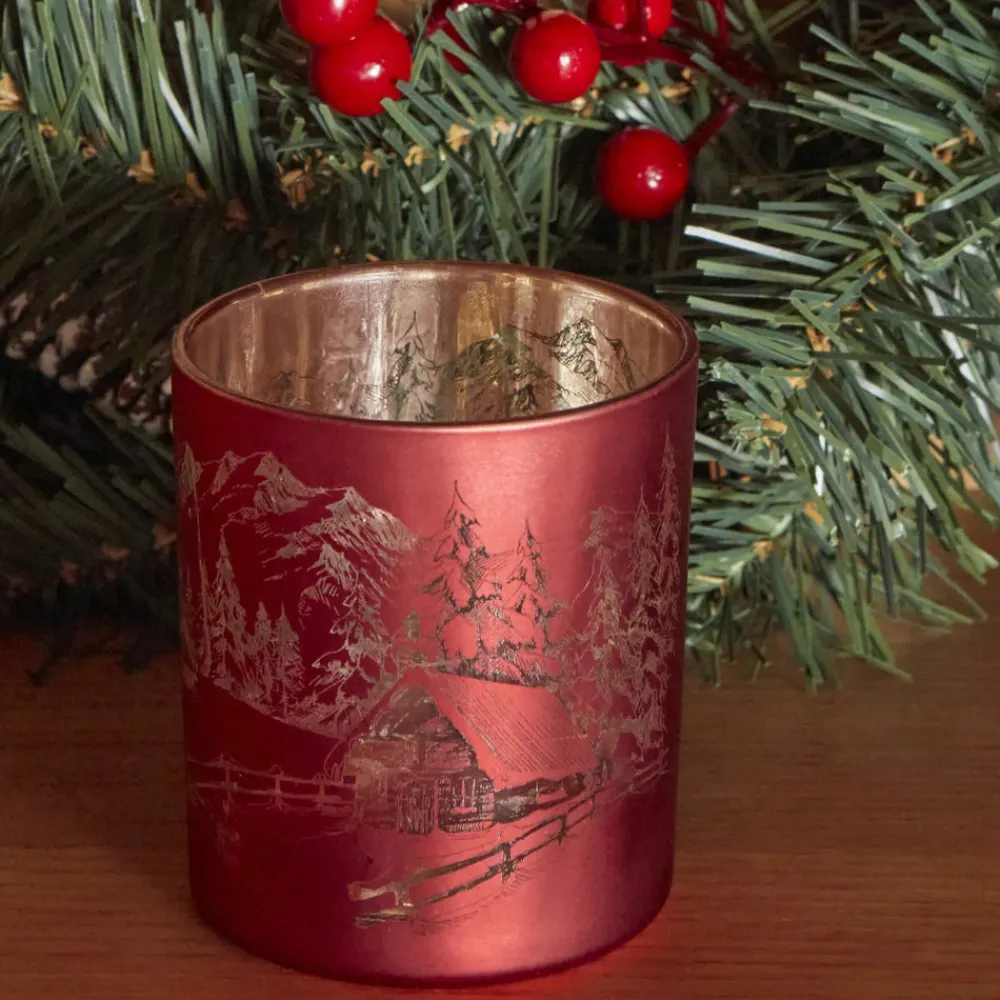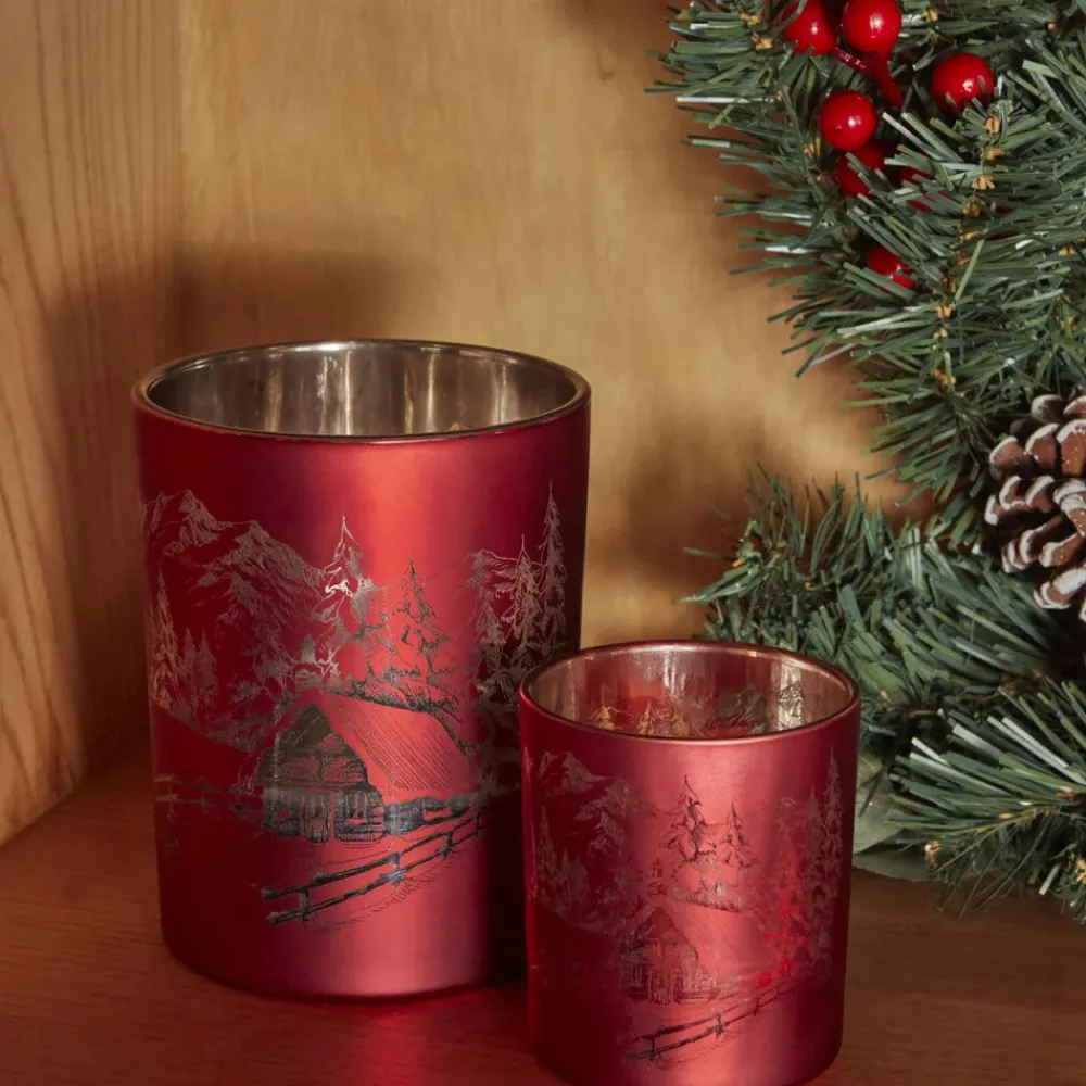 Karaca New Year Christmas Helena Glass Candle Holder, 7cmx7.8cm, Red