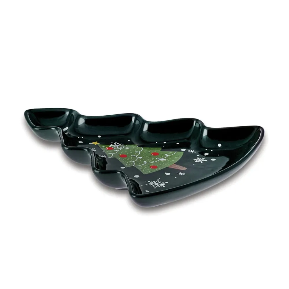 Karaca New Year Christmas New Generation Bone Golden Line Christmas Tree Decorative Plate, 21cm, Black Green