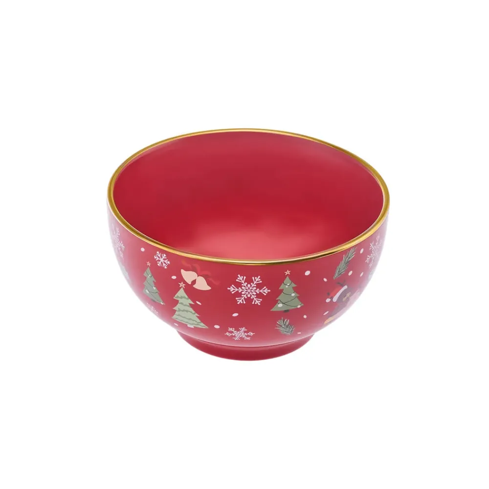 Karaca New Year Christmas New Generation Bone Golden Line Noodle Bowl, 14cm, Red Multi