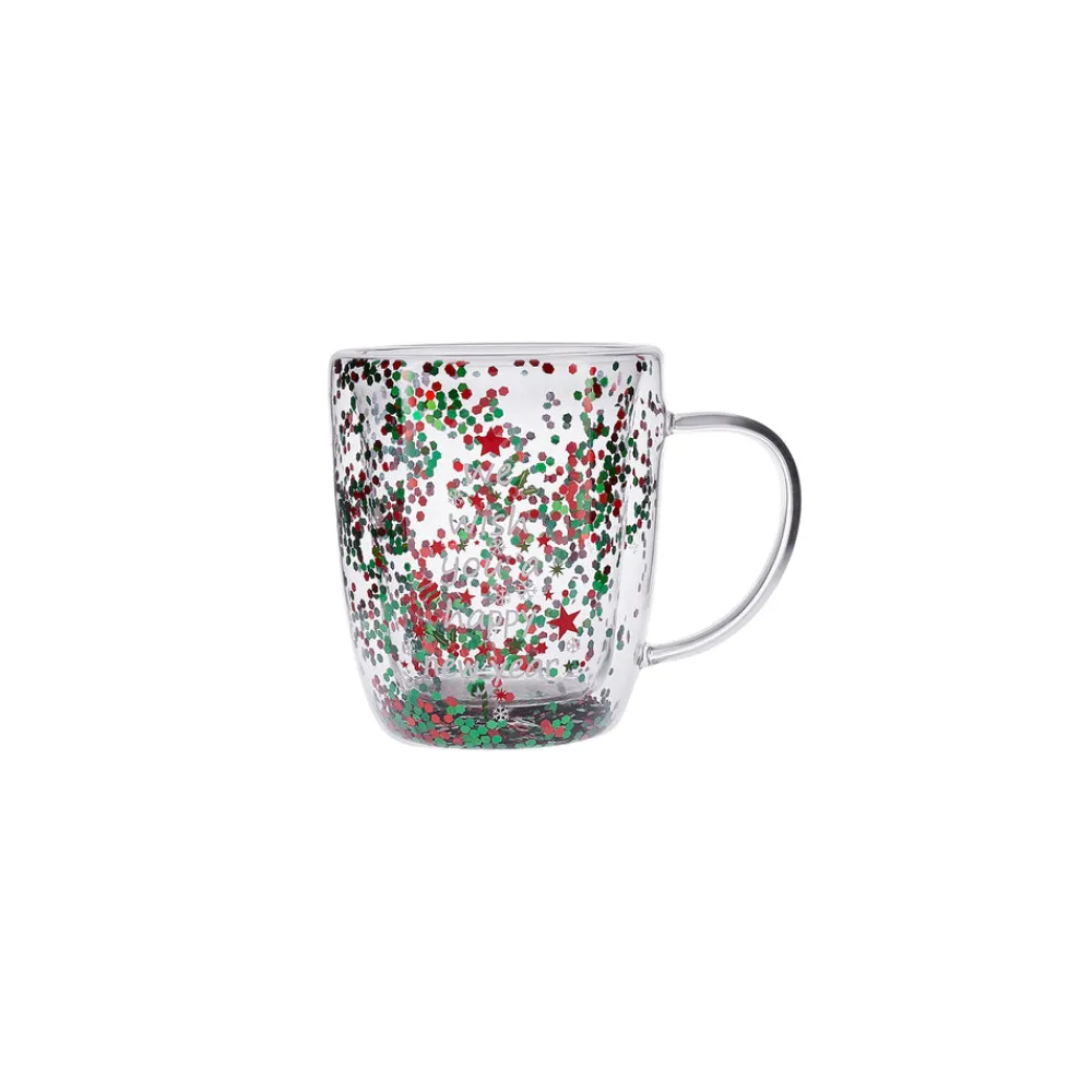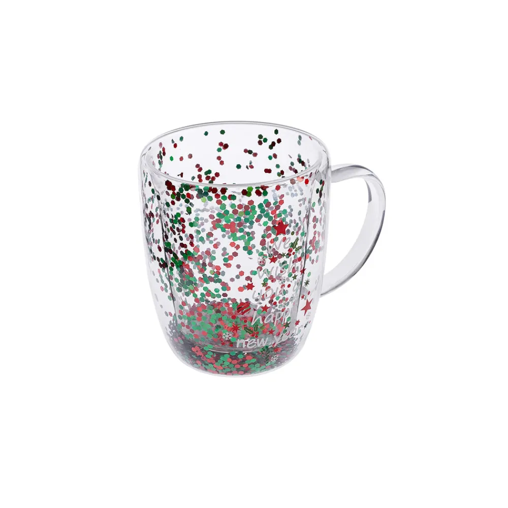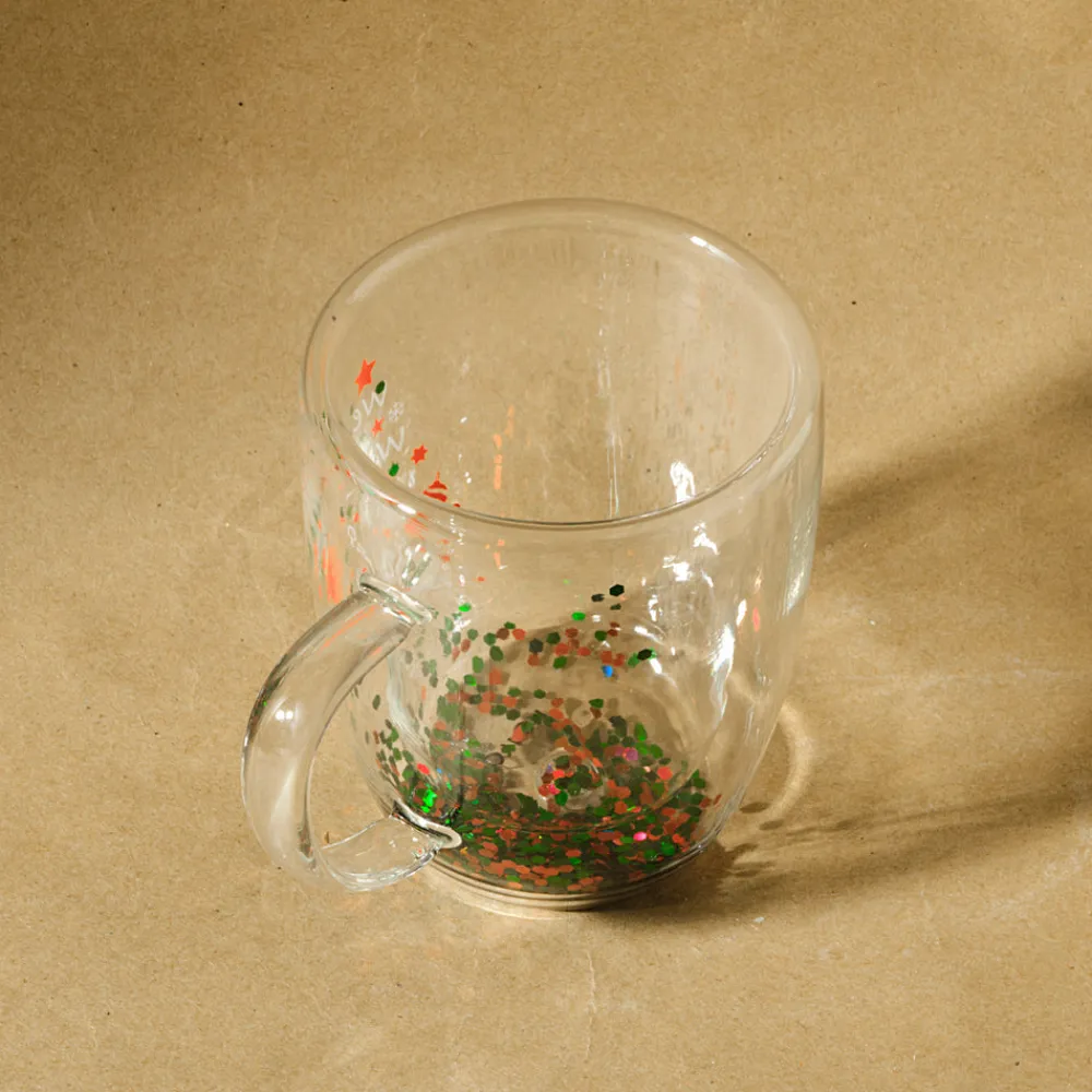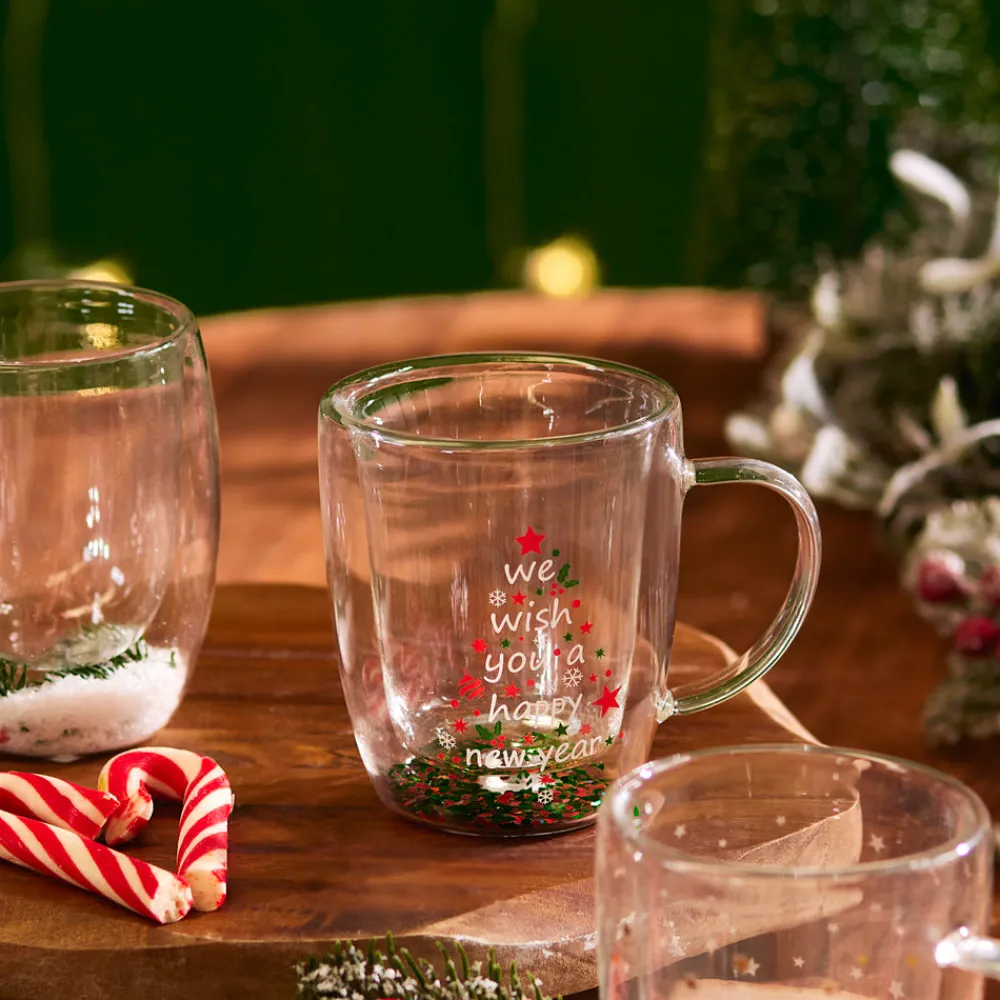 Karaca New Year Christmas Pia Double Trimmed Tree Mug, 350ml, Clear