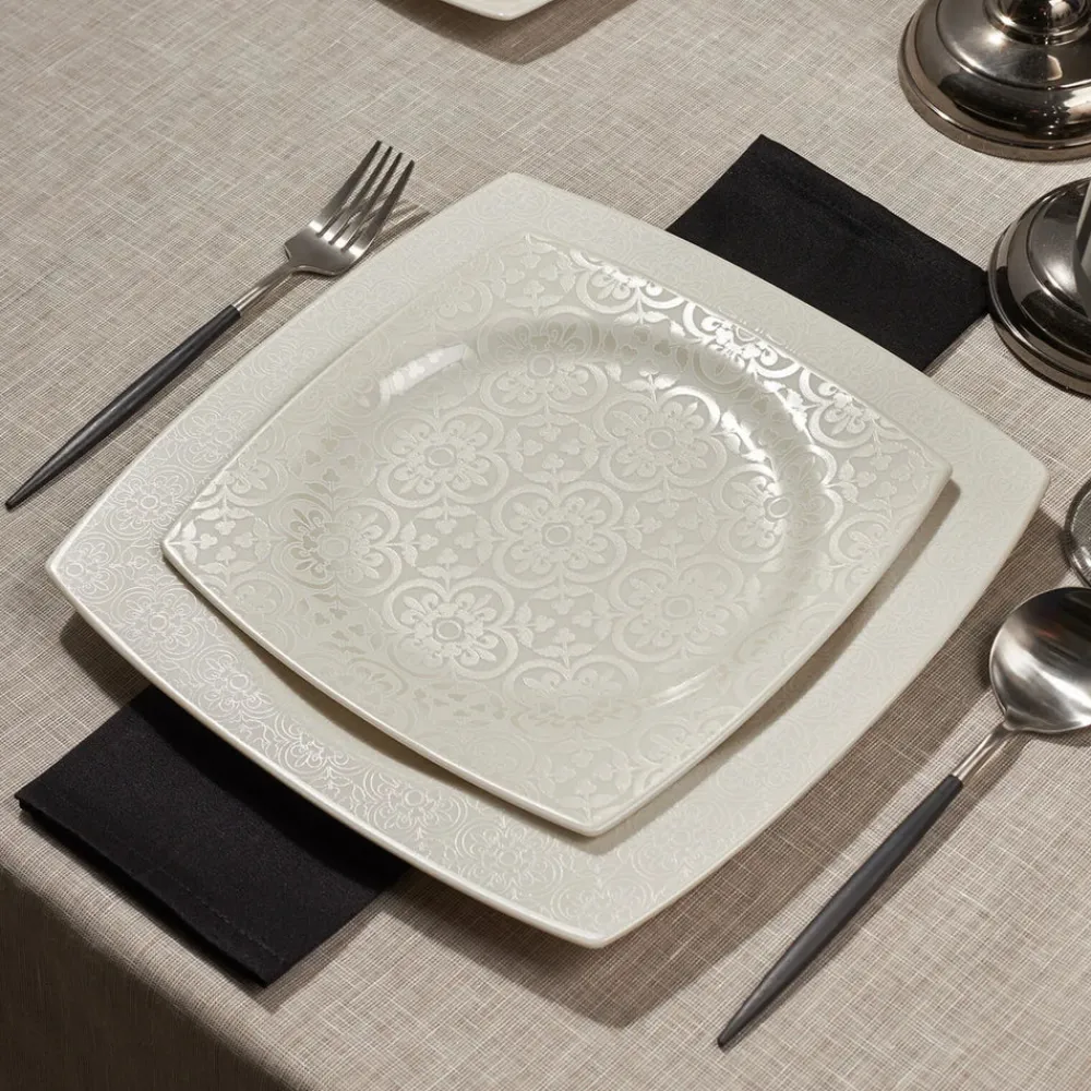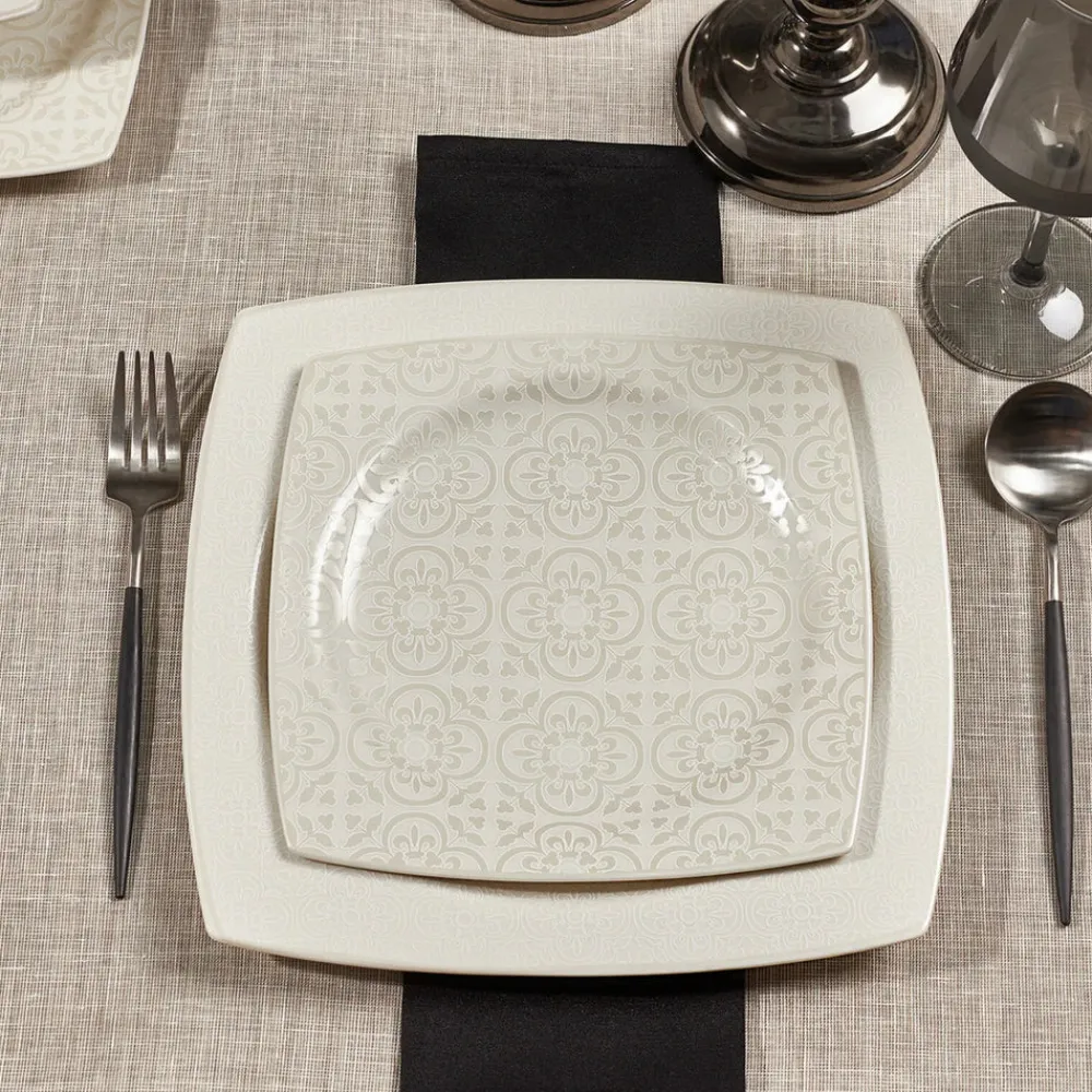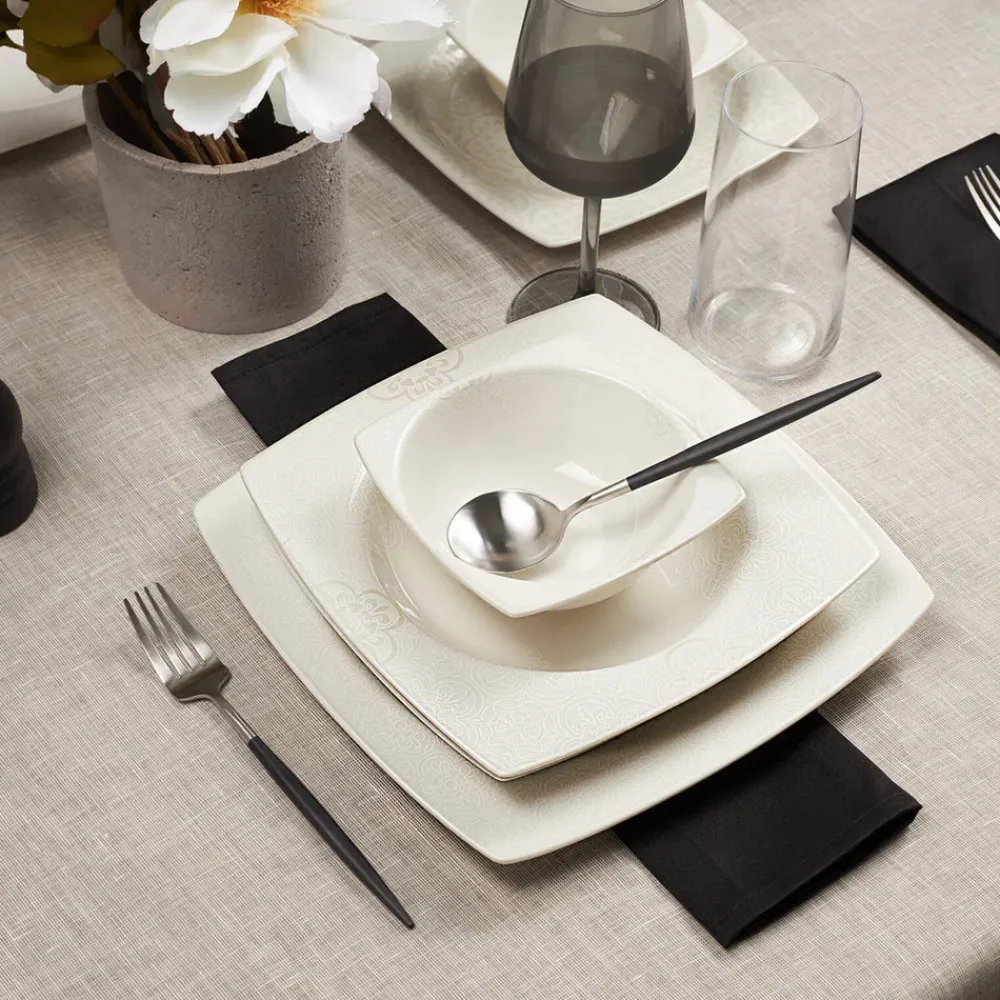 Crafted from high-quality porcelain, each piece showcases an elegant design, adding a touch of refinement to your table. The scratch and crack-resistant construction ensures that this dinner set remains intact, even with frequent use, making it a durable type of china crafted from high-quality porcelain.