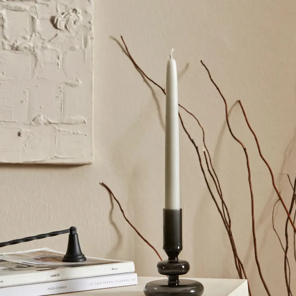 Crafted from high-quality glass, this candle holder boasts durability and elegance. The black finish adds a touch of sophistication, while the sturdy base ensures stability when placed on any surface. Its simple yet elegant design makes it a versatile decor piece for any room in your home.
