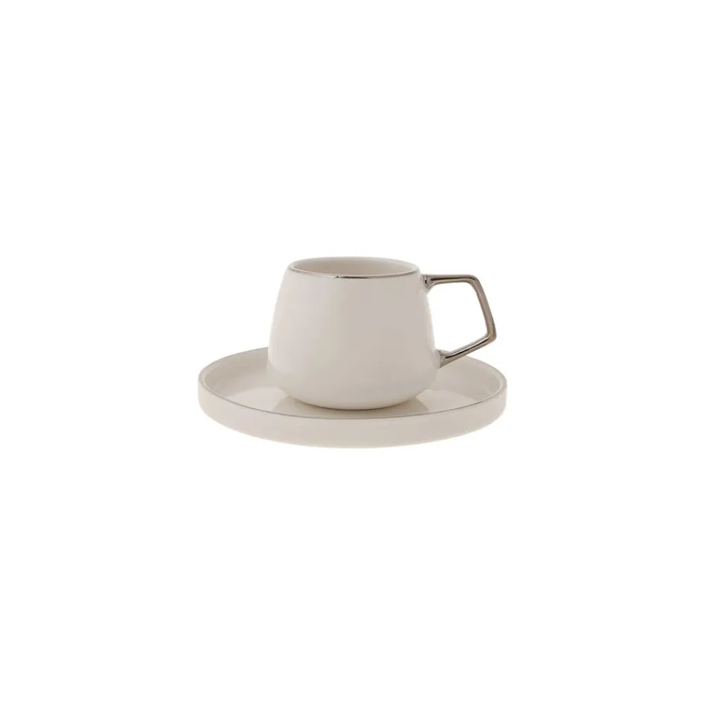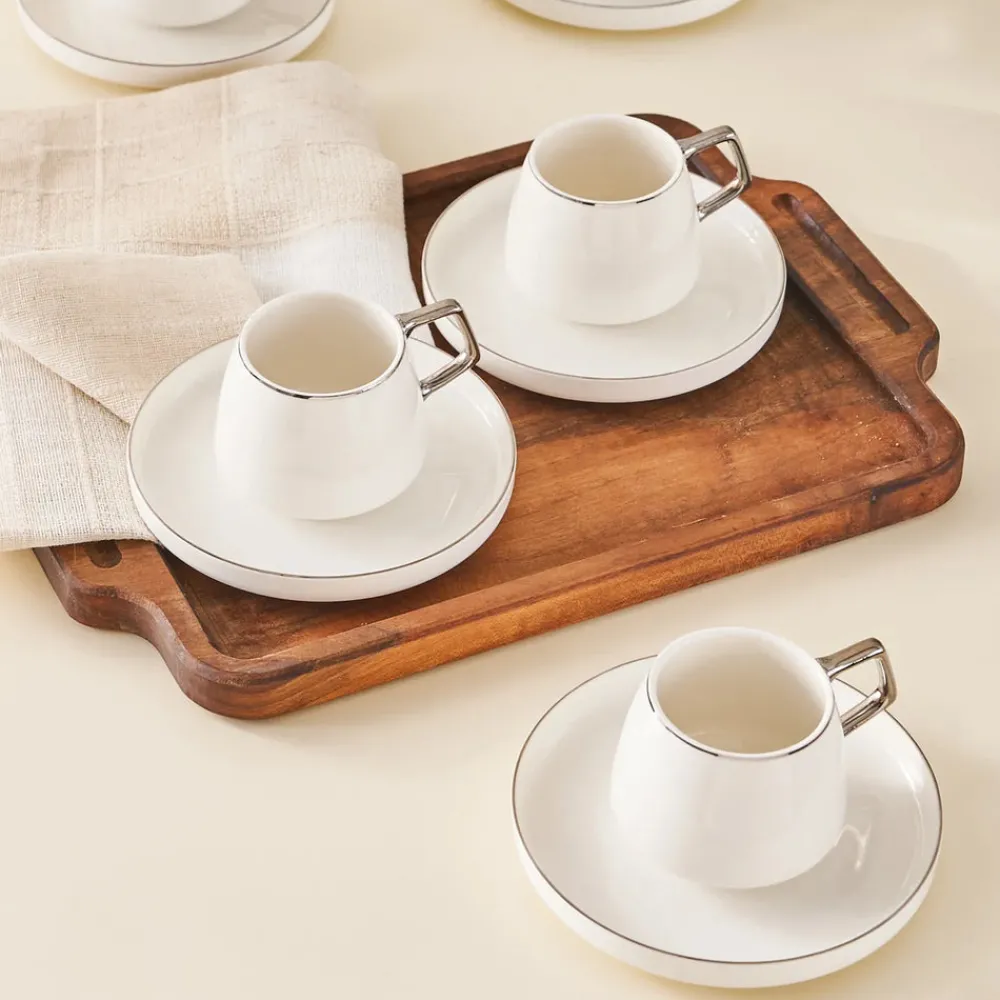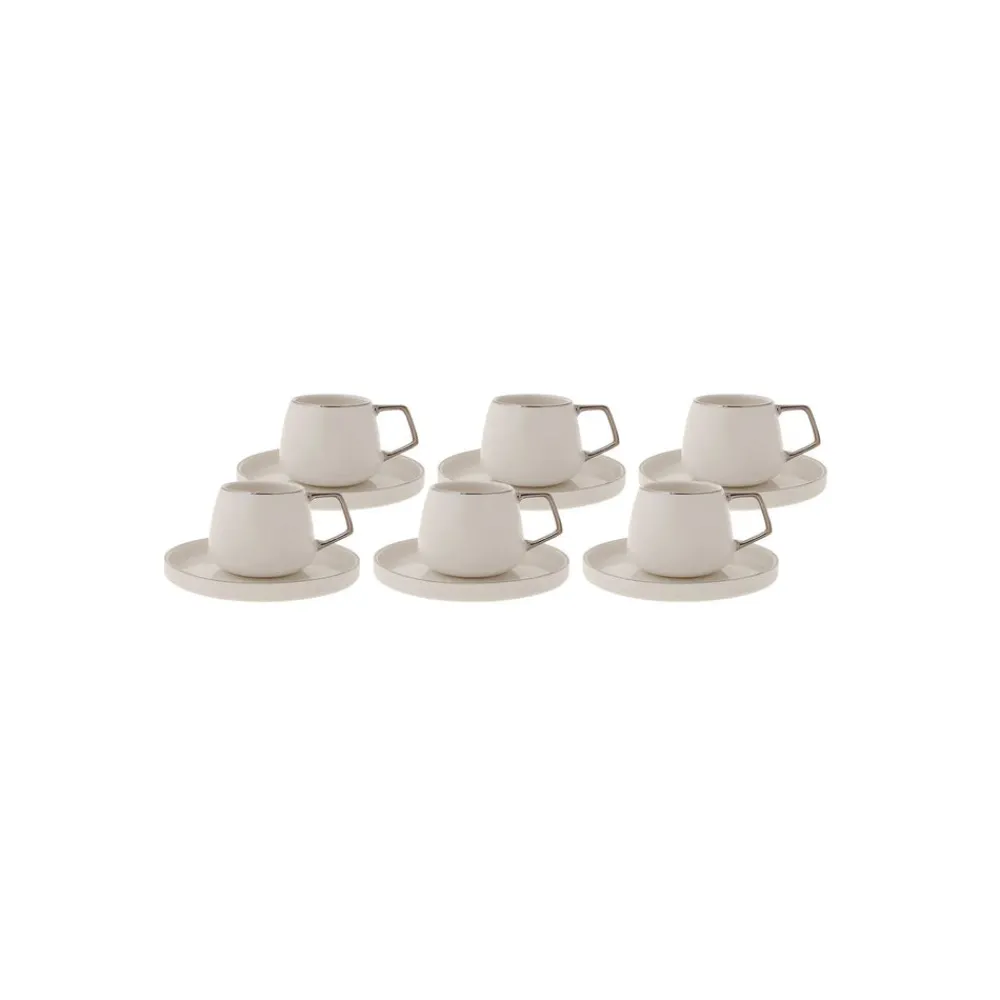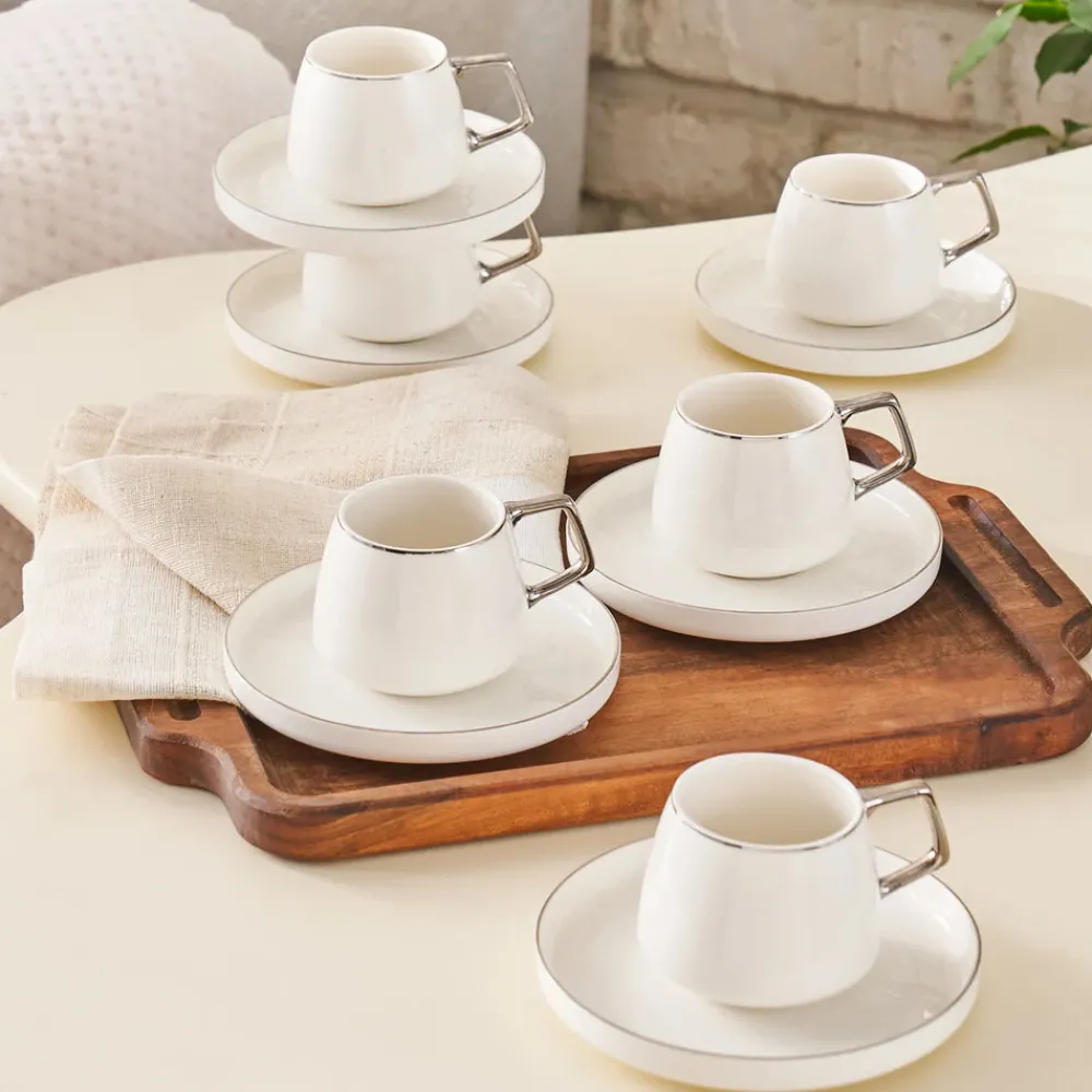 Karaca Streamline 12-Piece Porcelain Espresso Turkish Coffee Cup Set for 6 People, 100ml, White Silver
