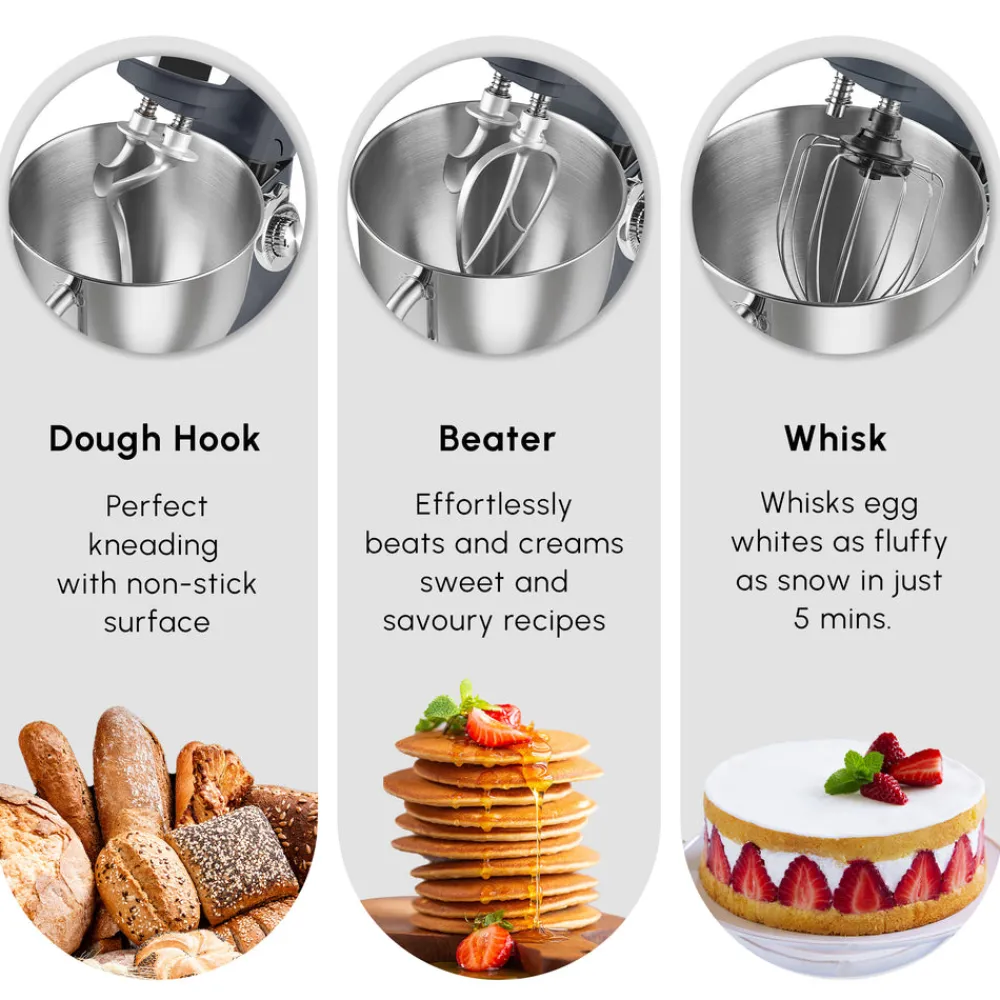 With the dough hook attachment, you can achieve perfect results by kneading the dough in the amount and consistency you want for all your pastries such as bread, pasta, and pastry. Our stand mixer effortlessly beats and creams sweet and savoury recipes alike with its beater feature