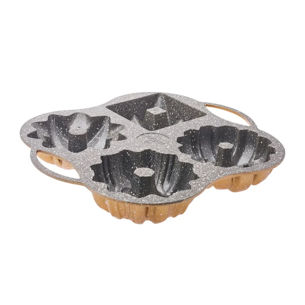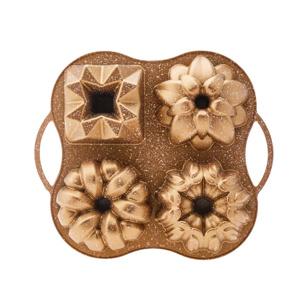 Karaca Aluminium Cast Decorative Bundt Cake Tin, 4 Piece, 28cmx35cm, Gold