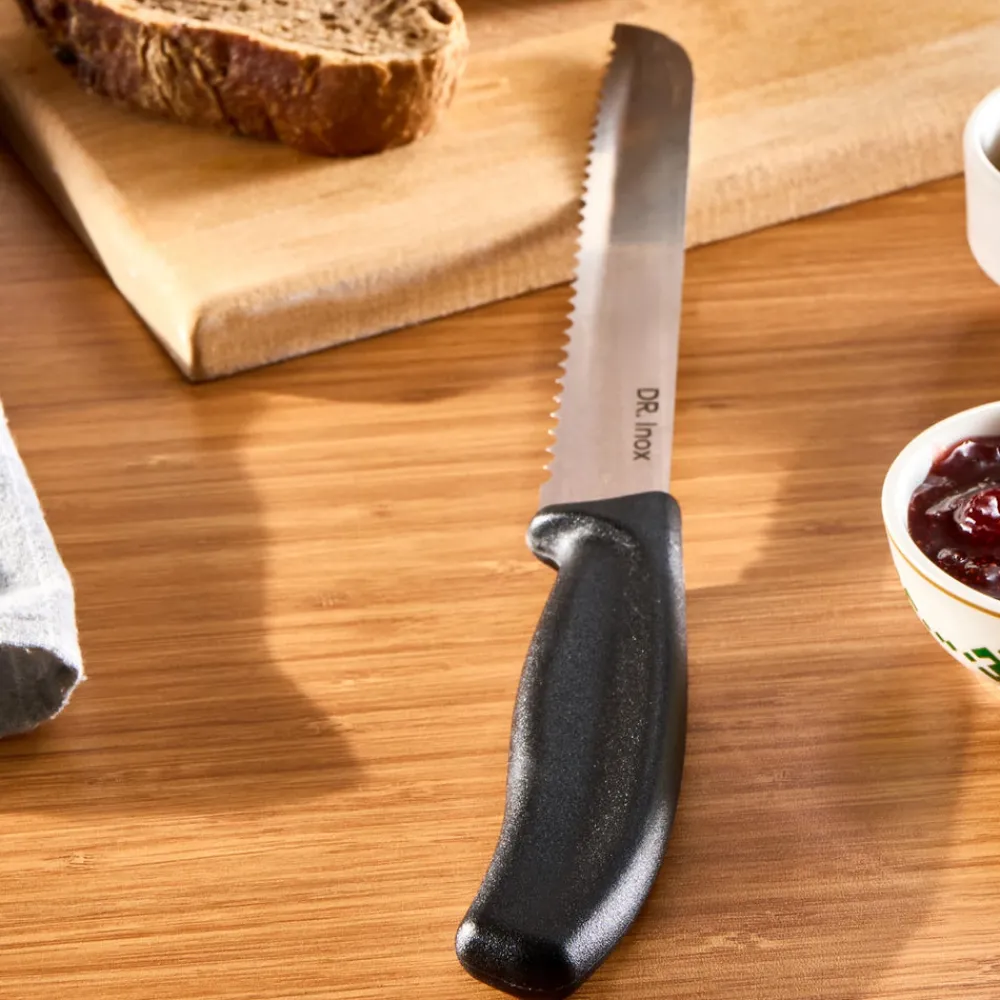 Dr.Inox Stainless Steel Bread Knife, 32cm, Black