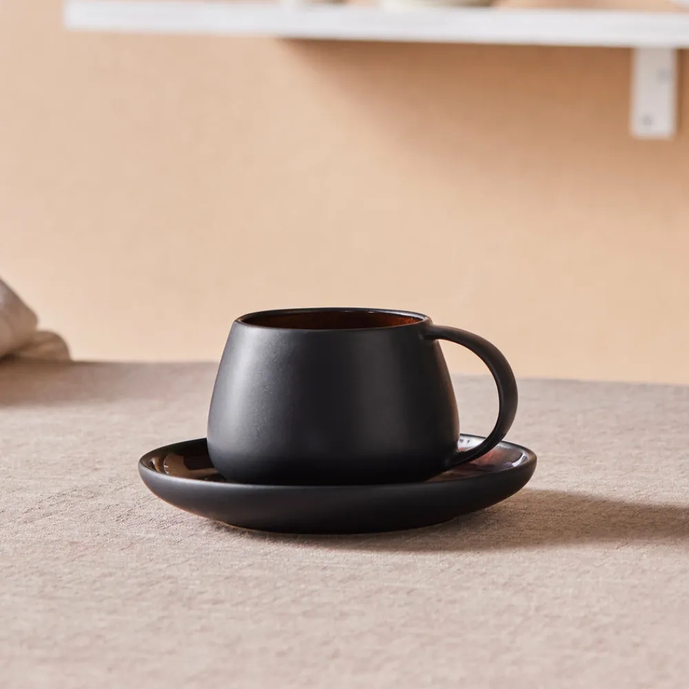 Karaca Earth Collection New Galactic 2-Piece Reactive Glaze Tea Set, 300ml, Black