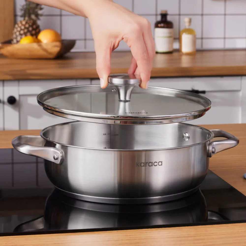 Karaca Elite Stainless Steel Induction Shallow Casserole & Lid, 24cm, Silver